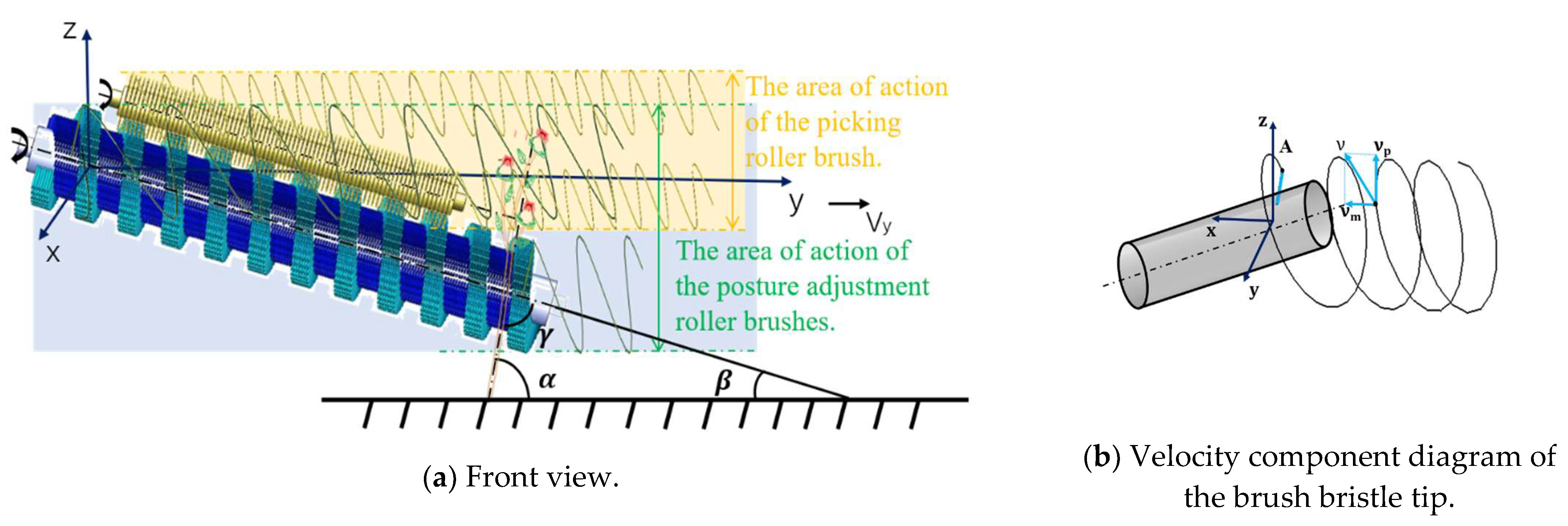 4.2. Kinematic Characteristics Study of the Roller Brushes