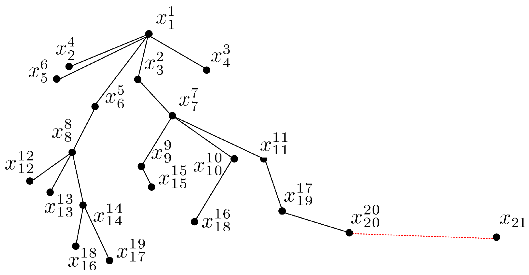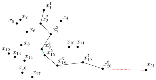 - Step 2. Local error bound for chain distance: The chain distance decomposes long distances into multiple short segments, reaching the same through stepwise nearest neighbor linking. The distance between adjacent point pairs and in the chain is sufficiently small. Taking , , the error for local link sets in the chain path is:where . The total error of chain distance is:where . Therefore, the relative error of chain distance is: