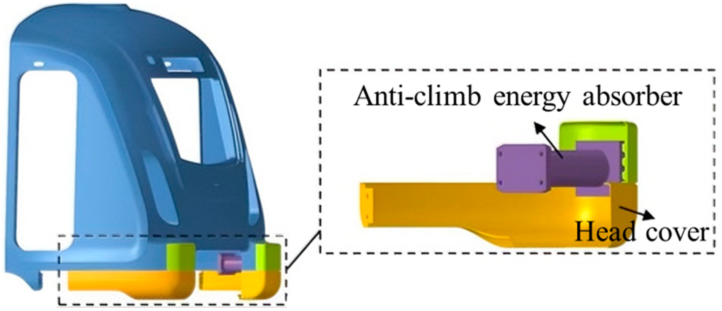 5]. In the event of a sudden rear-end or head-on collision, the head cover is the first to come into contact. Therefore, a head cover with excessive strength and stiffness will hinder the penetration of the anti-climbing teeth, thus preventing the AEA from fully absorbing the energy during the collision.
