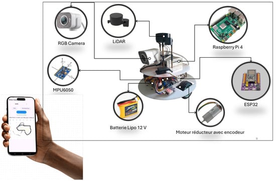 The last 10 years have witnessed the emergence of autonomous mobile robots (AMRs) as a pivotal technology across domestic, logistic, and industrial fields because of their capabilities of operating without dedicated infrastructure and performing tasks such as navigation, detection, and manipulation autonomously [1]. The rising demand for robotic service applications in hospitals, warehouses, smart manufacturing, and smart homes, where they enhance efficiency and reduce human intervention, has increased their adoption substantially [2,3]. Current autonomous mobile robots (AMRs) typically adopt a modular architecture that possesses three basic components: perception, localization, and navigation. Environmental perception is achieved by using sensors such as light detection and ranging (LiDAR), inertial measurement units (IMUs) and cameras. Simultaneous Localization and Mapping (SLAM) algorithms are also applied in order to construct environmental maps and localize the robot at specific locations within them. In navigation, global and local path planning algorithms such as A*, employed in global path planning, and the dynamic window approach (DWA), applied in local obstacle avoidance, guarantee smooth and adaptive mobility. The latest improvements in the field, such as the optimized integration of A* with DWA in Sánchez-Ibáñez et al. [4], Ishigami et al. [5] works, have aided in enhancing path efficiency and reducing the computational overhead on embedded platforms, enabling real-time performance in complex environments.