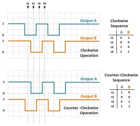 Figure 8. Quadrature encoder signals for detection of rotational direction.- ‐