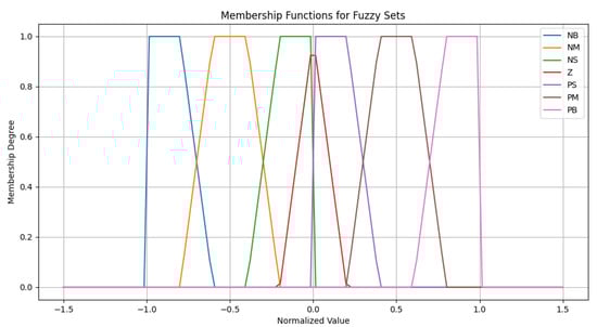 - Membership Calculation: Function calculateMemberships utilizes trapezoidal membership functions (trapezoidalMF) to project the normalized error (e) and error derivative (dedt) into seven fuzzy sets as a representation of each one’s degree of membership of NB.