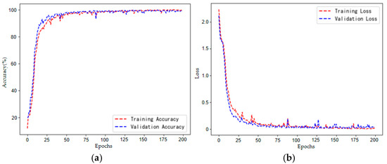 Training Iteration Status Based on the CWRU Dataset. (a) Accuracy Curve; (b) Loss Value Curve.