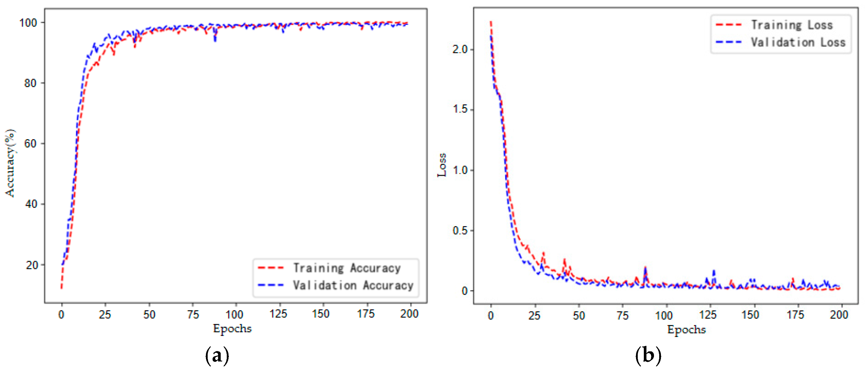 - Dual experimental validation was conducted on the self-constructed ball mill load dataset and the internationally recognized CWRU bearing fault dataset. Experimental results demonstrate that the proposed model not only achieves an accuracy of 96.20% in the 9-class ball mill load identification task but also reaches an accuracy of 99.36% in the 10-class CWRU bearing fault diagnosis task.