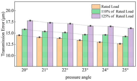Peak-to-peak transmission error under different working conditions and different pressure angles.