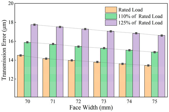 Peak-to-peak transmission error under different working conditions and different face widths.