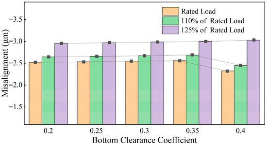Misalignment under different working conditions and different bottom clearance coefficients.