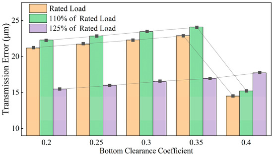 Peak-to-peak transmission error under different working conditions and different bottom clearance coefficients.