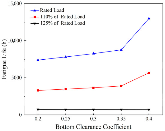 Fatigue life under different working conditions and different bottom clearance coefficients.