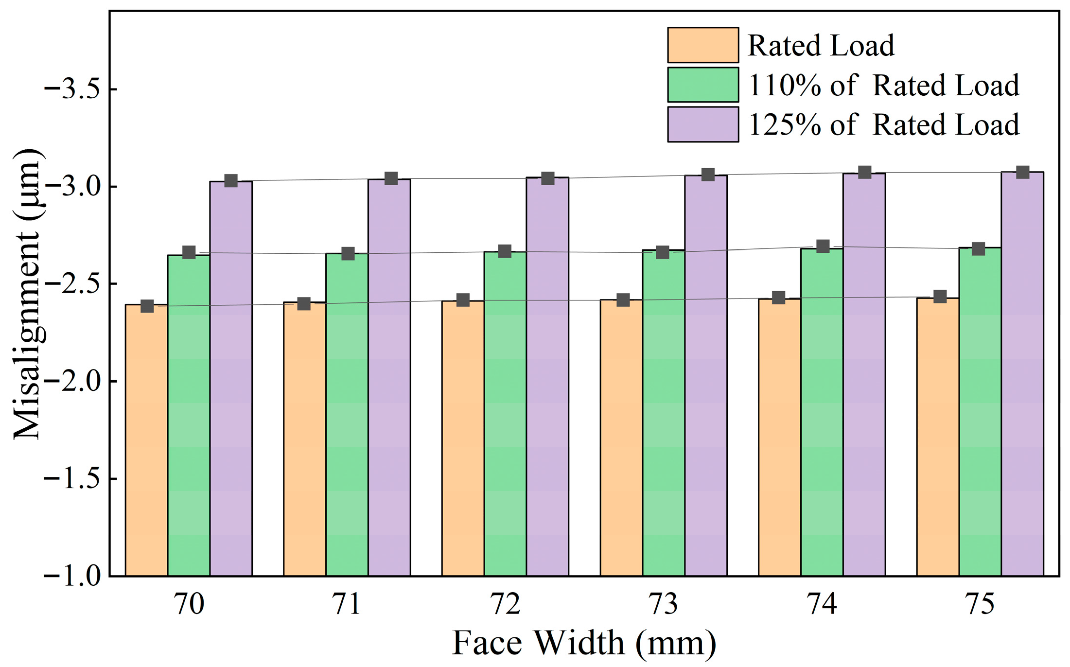 3.2. Influence of Face Width on Gear Meshing Characteristics and Fatigue Life
