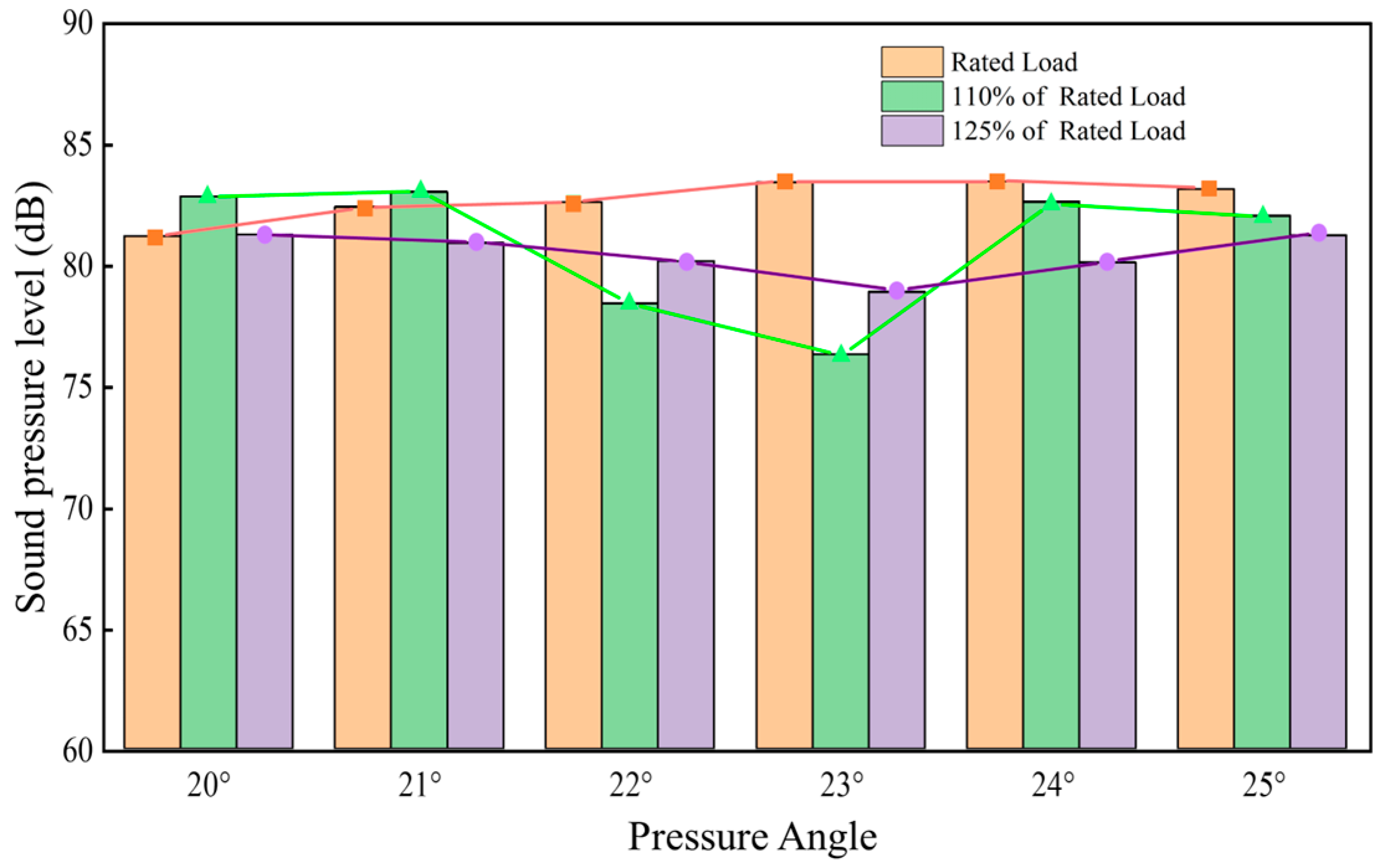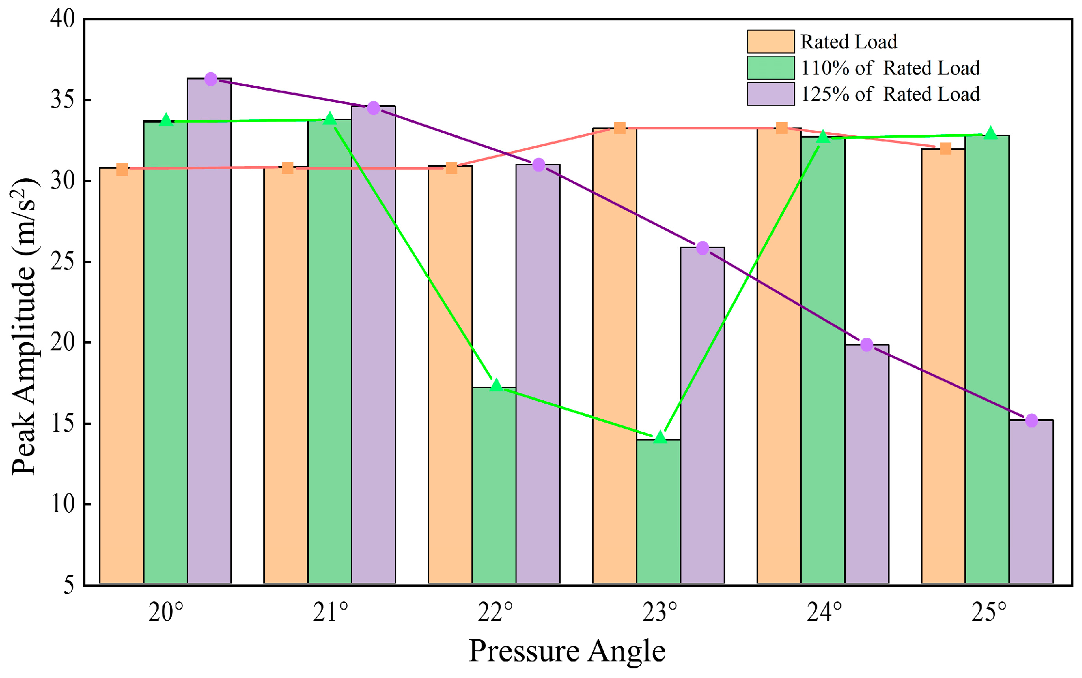 3.4.1. Influence of Pressure Angle on Vibration and Noise in the Gear Transmission System
