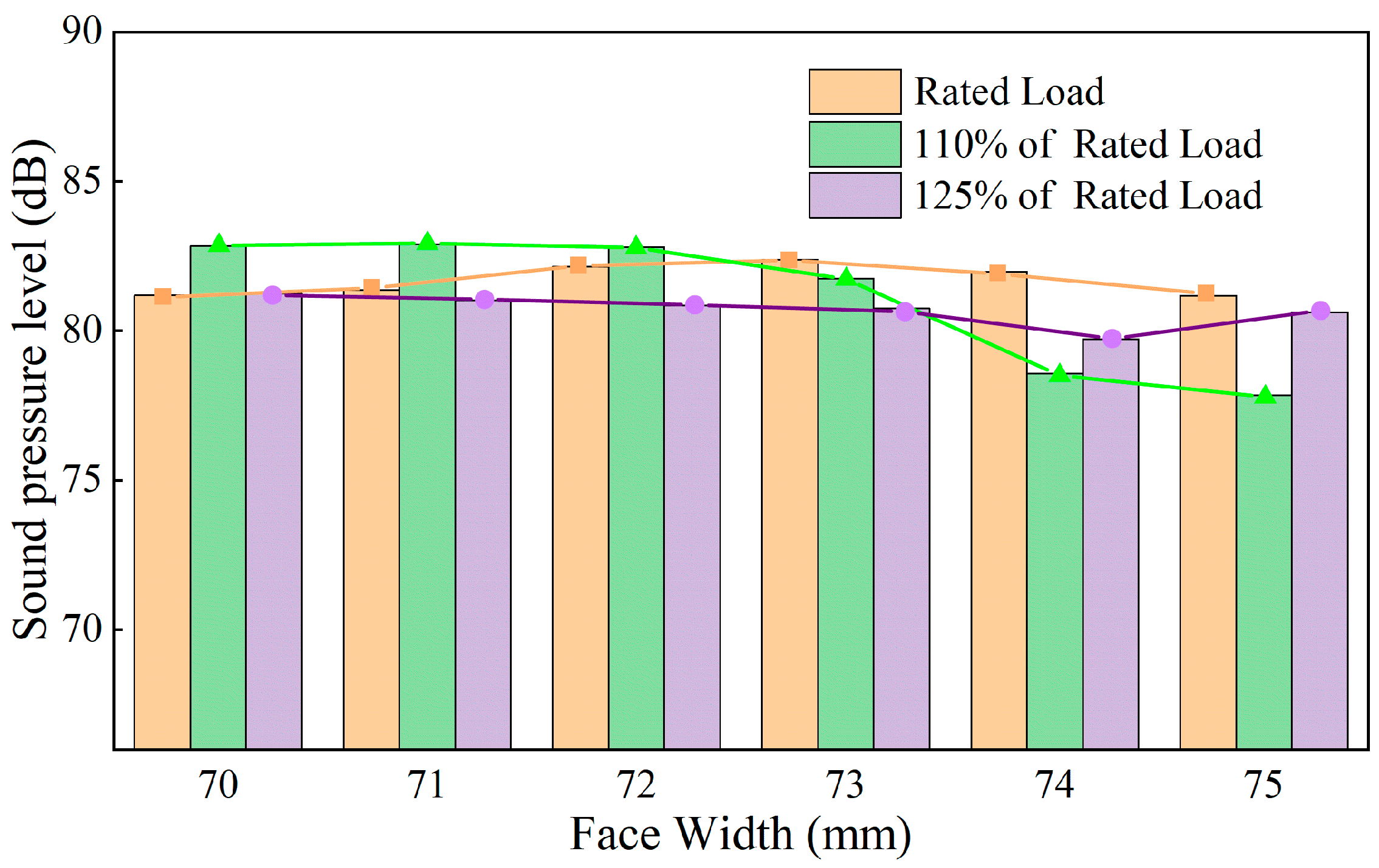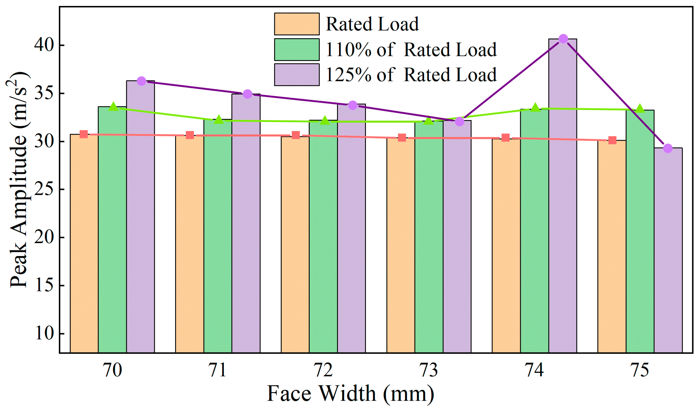 3.4.2. Influence of Face Width on Vibration and Noise in the Gear Transmission System