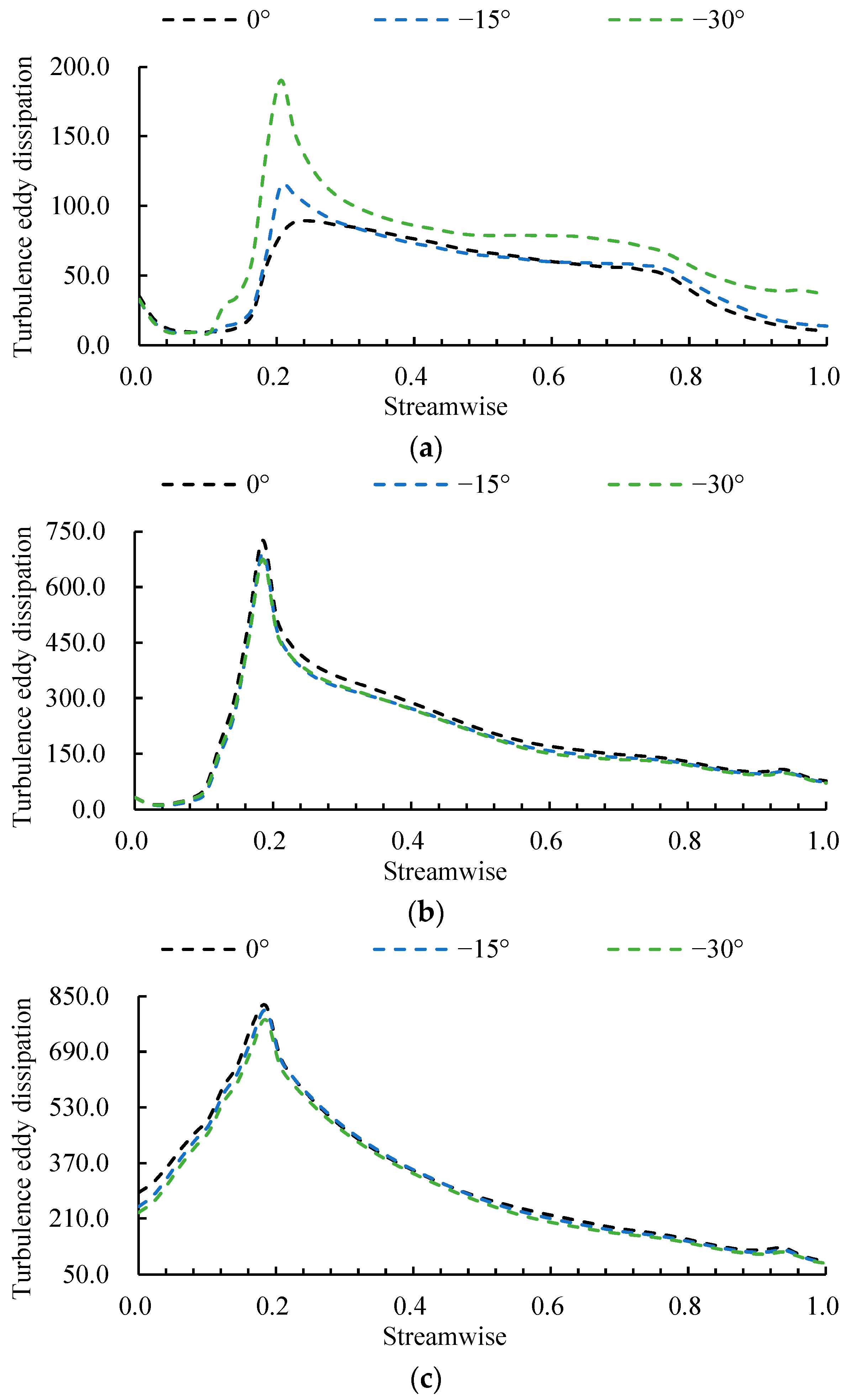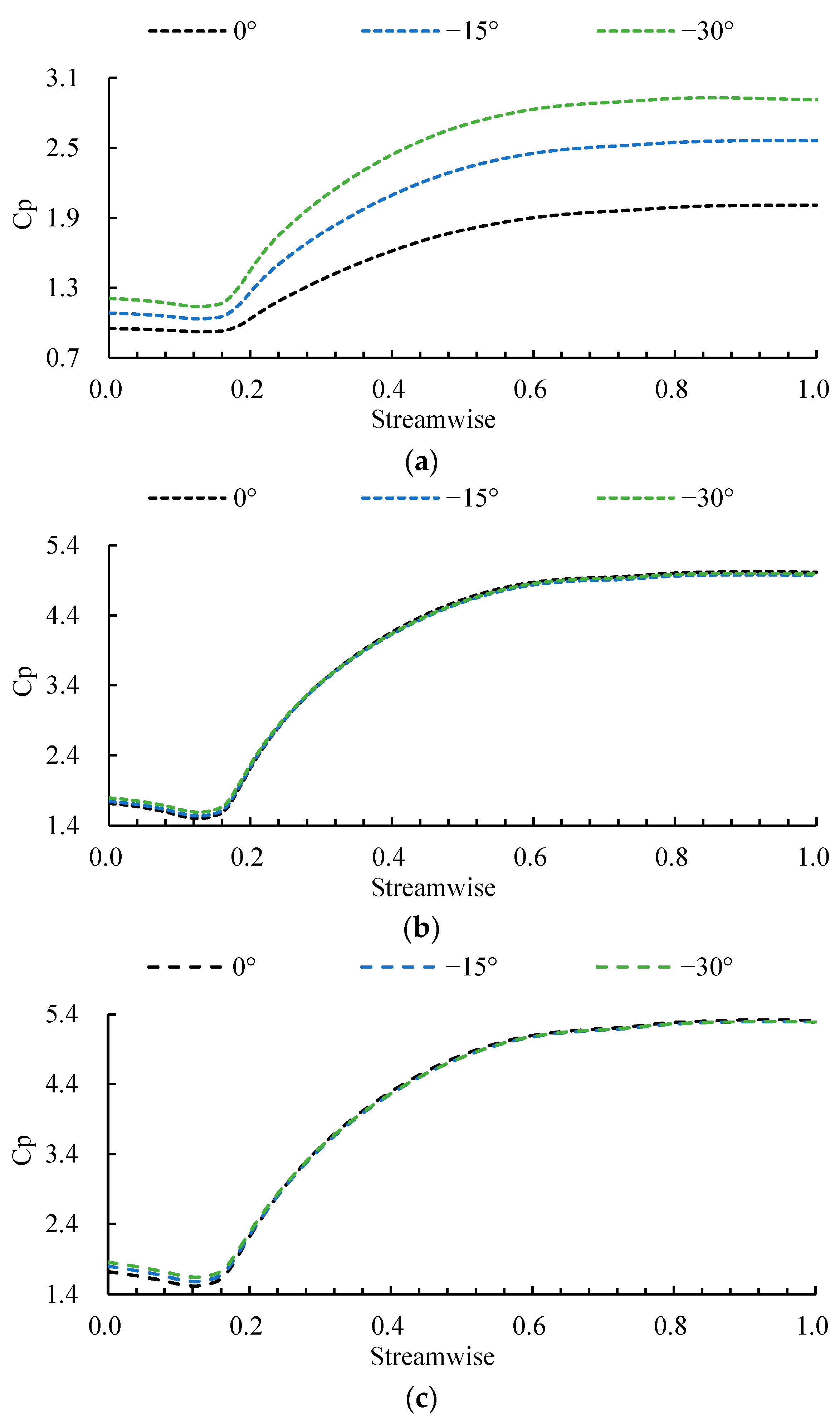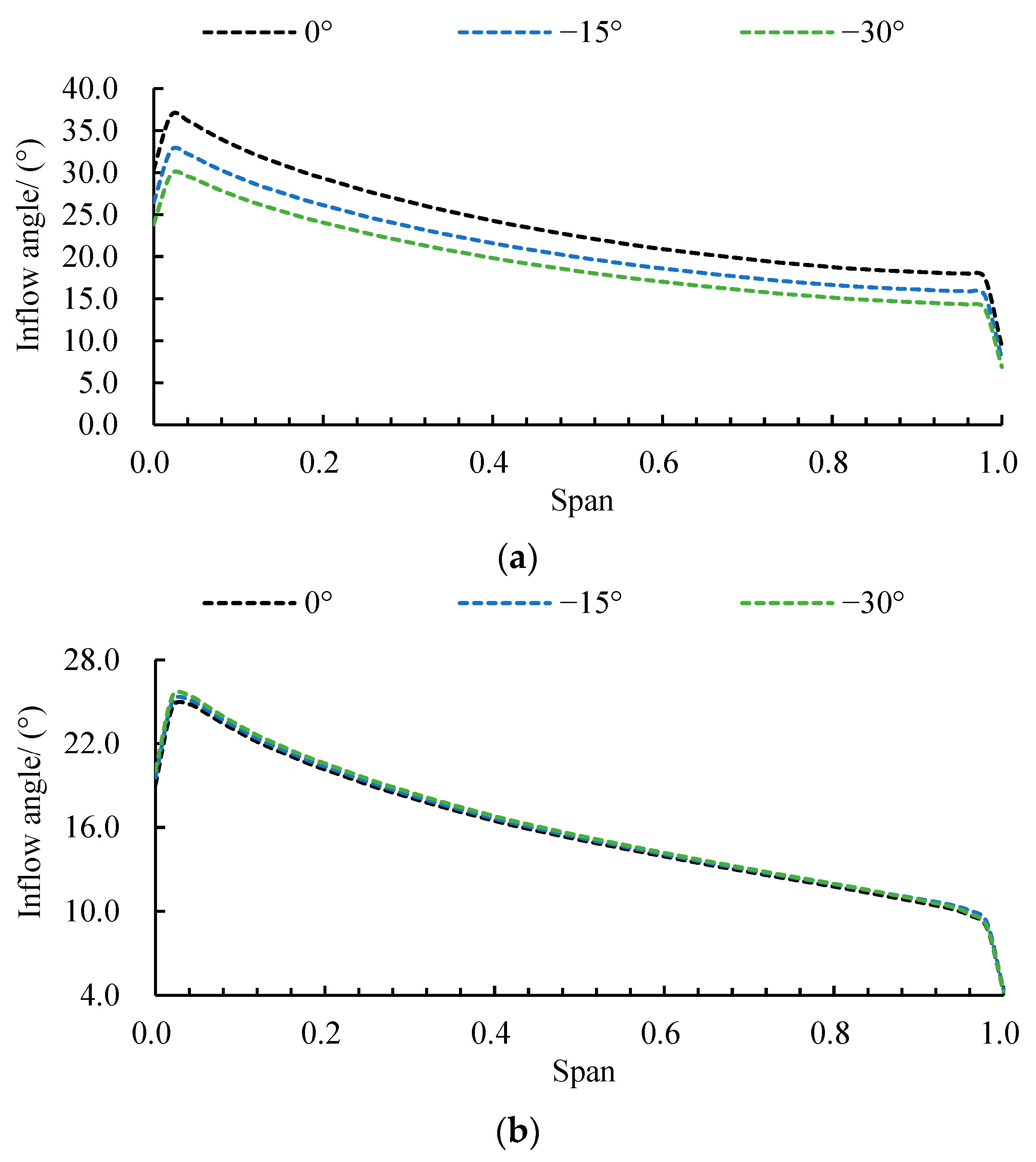 - A decreased deflection angle intensifies the stall process by amplifying the sensitivity of leading-edge separation, tip leakage flow, and the hub vortex. It also aggravates mid-axial flow blockage, as evidenced by a 6.02–8.13% higher static pressure coefficient in the −30° scheme versus the 0° scheme, which disrupts pressure recovery and degrades the impeller’s work capacity. This leads to a critical trade-off: while a smaller angle hastens stall inception, it paradoxically yields a less unstable stall flow field.