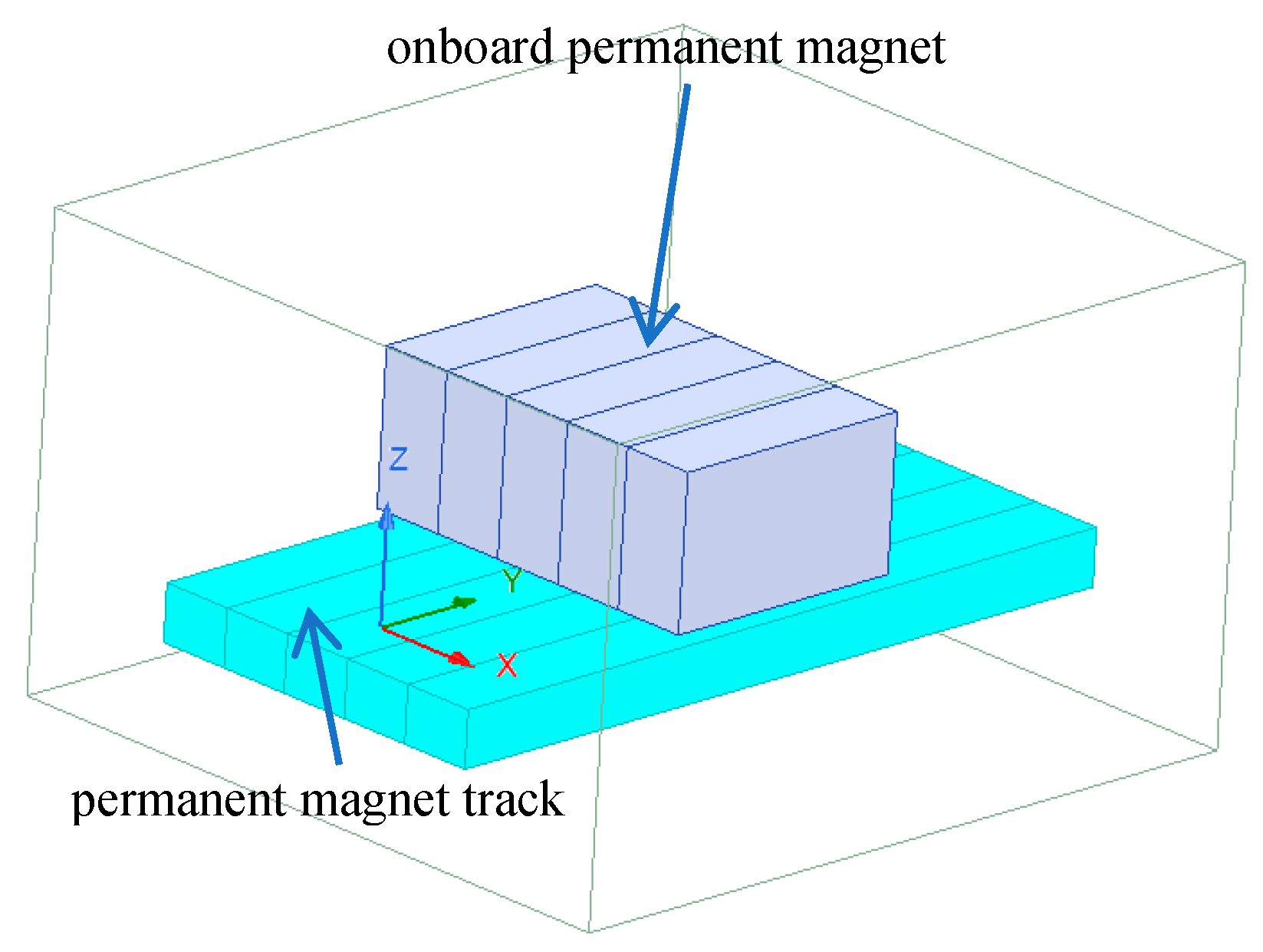 This reduction is primarily attributed to the fact that, in this mounting type, a certain angle is formed between the onboard magnet and the permanent magnet track in the horizontal plane, as illustrated in