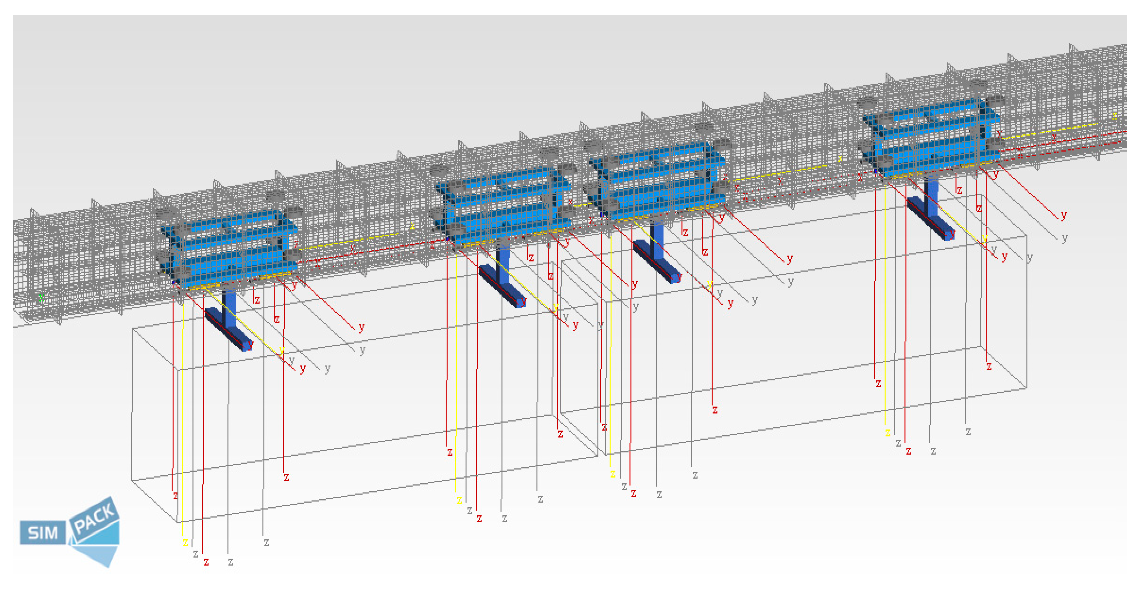 In the Xingguo PML, each bogie levitates through four discrete levitation points. Among them, the suspension points symmetrically arranged on the left and right sides of the bogie form a basic suspension unit. This unit is similar to the wheelset in wheel–rail traffic in structure, and is the core of bearing and transmitting magnetic force. In this paper, the levitation unit formed by the left and right two-point coupling is defined as “Magnetic Wheels”. Consequently, each bogie essentially achieves stable levitation through the collective interaction of two sets of dual “Magnetic Wheels”. Current research predominantly focuses on theoretical analysis and simulation verification of single-point levitation characteristics [