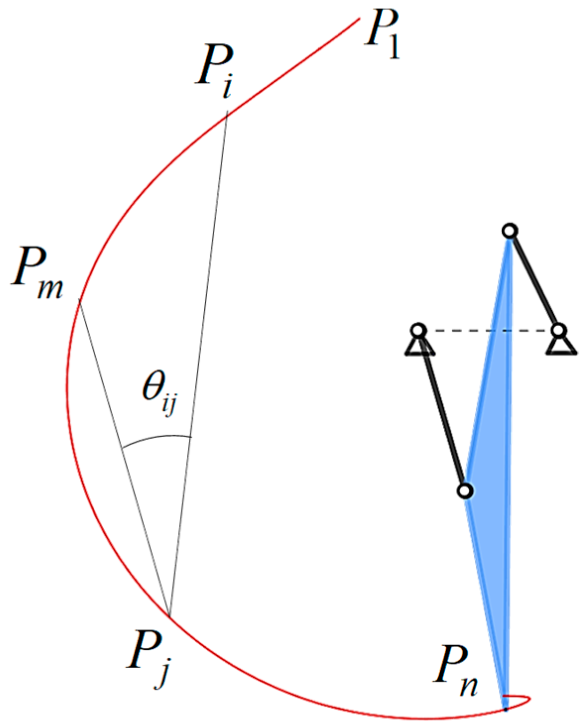 - Ascertain the existence of a contour segment that meets the condition . If available, use this contour segment as the trajectory matching outcome and record its associated dimensional parameters as mechanism design parameters. If not present, advance to the subsequent level of the clustering hierarchy.