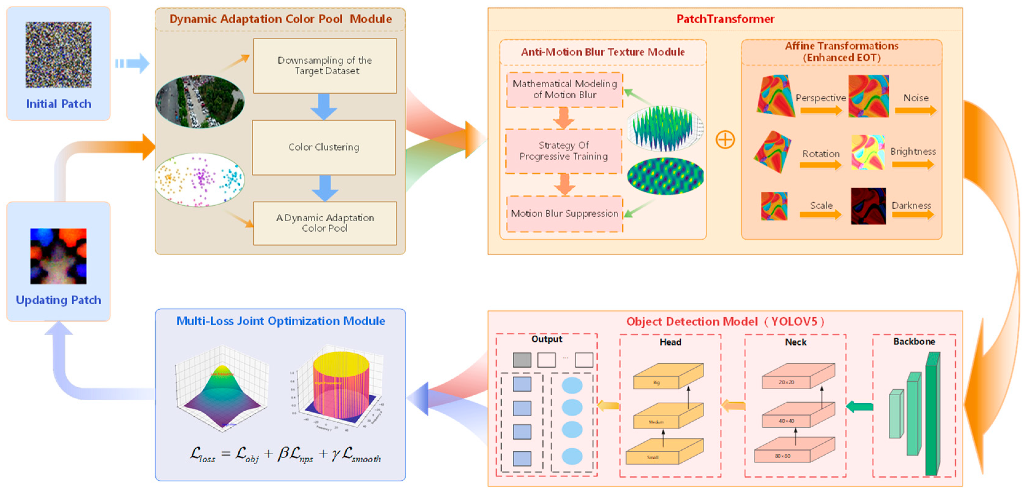 - An environmental adaptive color pool extraction method for adversarial patches is designed. The method enables the patch colors to blend better with the surrounding environments.