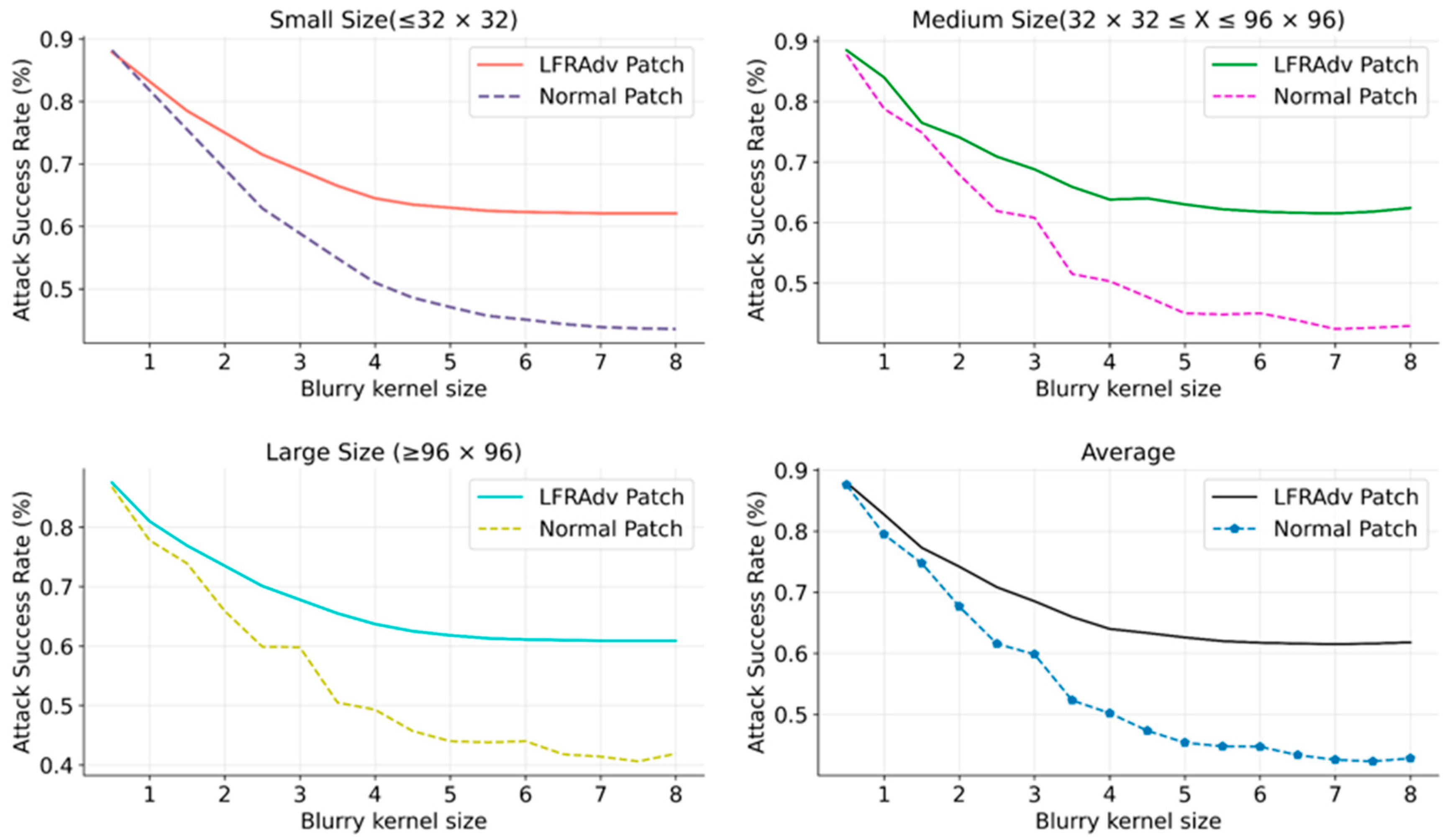 - Evaluate the ASR of anti-blur patches and ordinary patches after they are affixed to the target surface and subsequently influenced by blur interference.