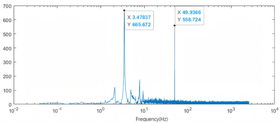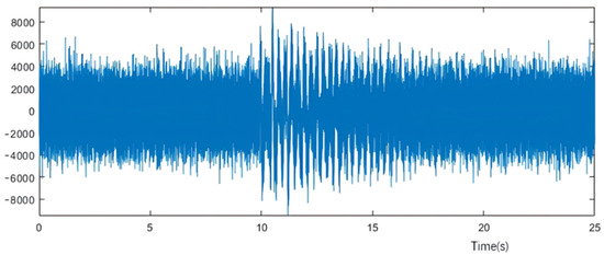 To obtain a typical leakage signal waveform, when the pipeline pressure is 0.5 MPa, the leakage aperture is set to 0.5 mm, the ball valve at the leakage position is quickly opened and then closed, and the sensor signal at the head-end is subsequently obtained, as shown in Figure 9. The frequency spectrum of the signal obtained by the Fourier transform is shown in Figure 10.