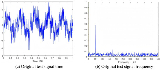 Construct a 5 Hz sine wave as a pure signal, superimpose a 50 Hz power frequency signal and a white noise signal, and then use it as a test signal, as shown in Figure 11.