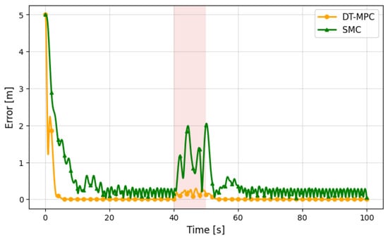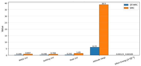 The latest developments include stochastic MPC, which addresses uncertainties and optimum loading due to payload variations, and adaptive MPC, which handles irregularly changing slung loads [38]. The authors of [39] present innovations in learning-enhanced MPC for online parameter tuning in turbulent conditions. The authors of [40] present innovations in distributed MPC for UAV formations with payload differences. Reference [41] discusses the topic of event-driven MPC to reduce computational load in resource-constrained UAVs. MPC is resilient because it counters disturbances at a high level [23]. This study integrates DTs and MPC, where the real-time feedback of a DT enables adaptation to irregular dynamics, thereby enhancing stability and precision [21].