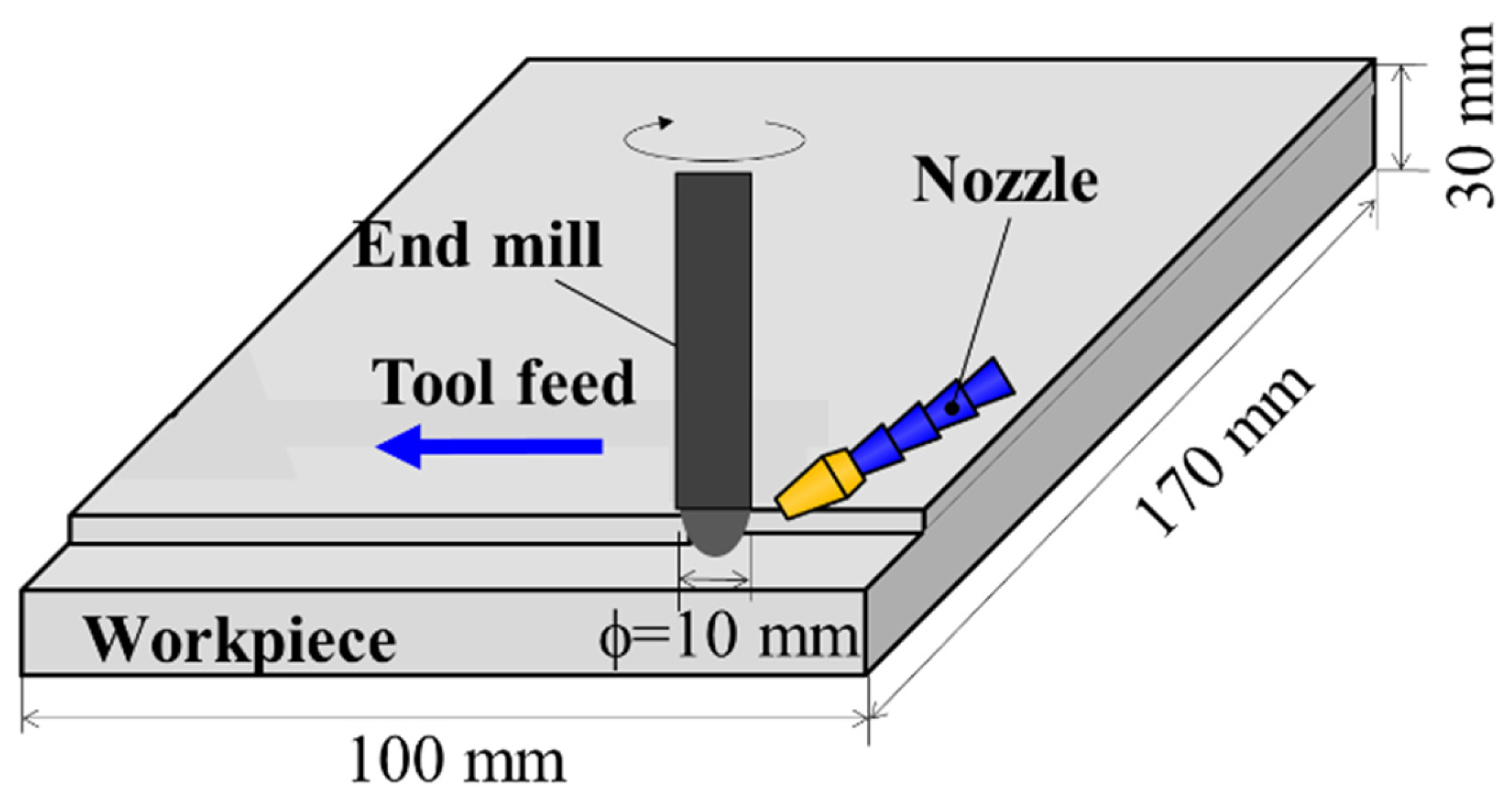 23], and the experimental milling is terminated when one of the following conditions occurs: (1) tool life is reached, (2) the maximum tool wear exceeds 0.1 mm or (3) the cutting length reaches 10 m. The tool life, tool wear, coating damage, amount of welding and surface roughness are mainly evaluated in this study. The used cutting fluid was Surecut CA-15 (Yanase SEIYU Co., Ltd., Osaka, Japan).