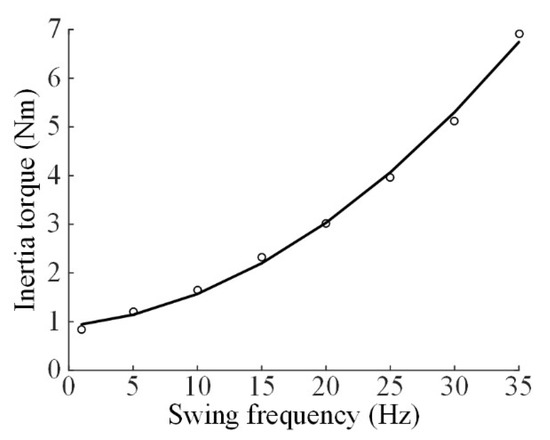 In Figure 6, the equation for the inertia torque Tg versus the swing frequency f of the swing system is obtained, as shown in Equation (1):