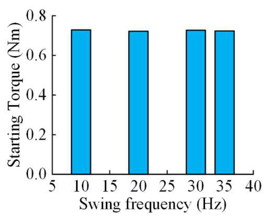 The starting torques of the bearing of 0.7288 N∙m and 0.7233 N∙m were detected at the swing frequencies of 10 Hz and 35 Hz, respectively. It can also be seen from the results that the starting torque is almost the same at 10 Hz and 35 Hz. The above analysis shows that the compensation of the starting torque can be realized by this system regardless of the high or low swing frequency, and its detection accuracy is effectively improved.