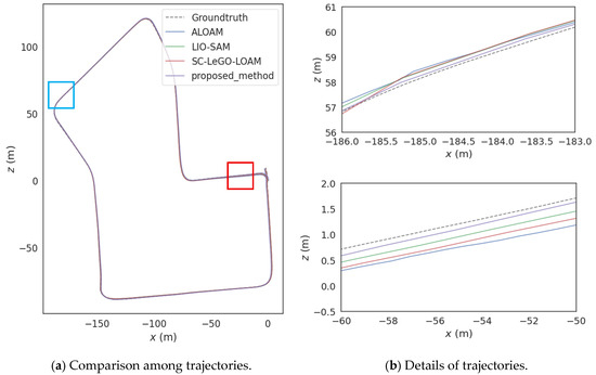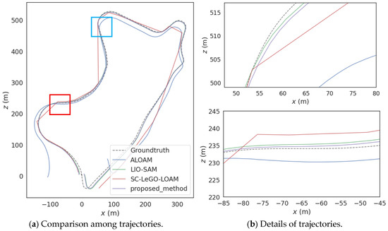 Figure 6. In order to reflect the superiority of the proposed method, it was compared with the prevalent SLAM methods such as Advanced Implementation of LOAM (ALOAM), LIO-SAM, and Scan Context-LeGO-LOAM (SC-LeGO-LOAM).