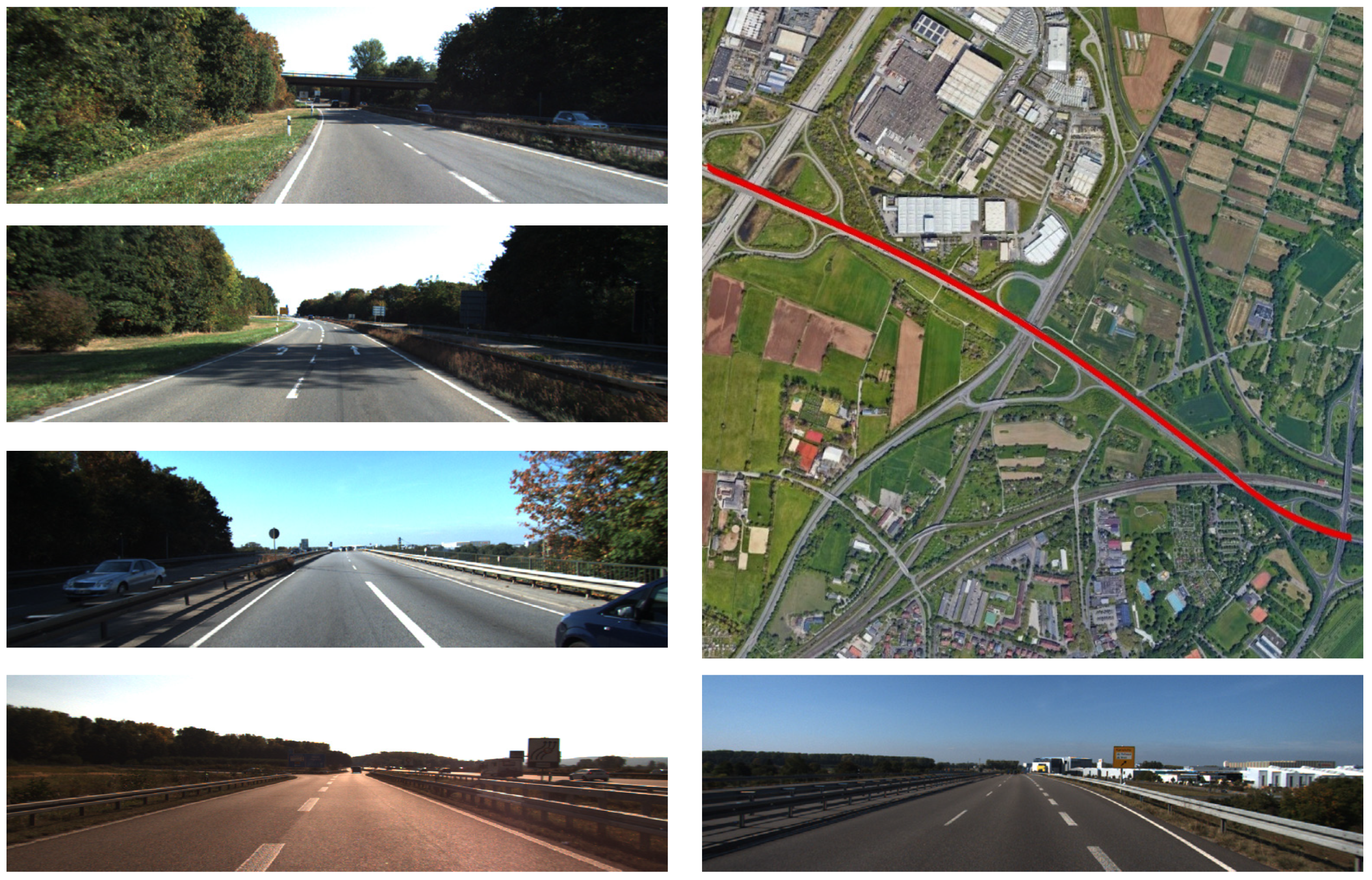 The proposed method was then verified for the accuracy of trajectory in a highway scene. Some snapshots of this scene and the real trajectory on the satellite image can be found in