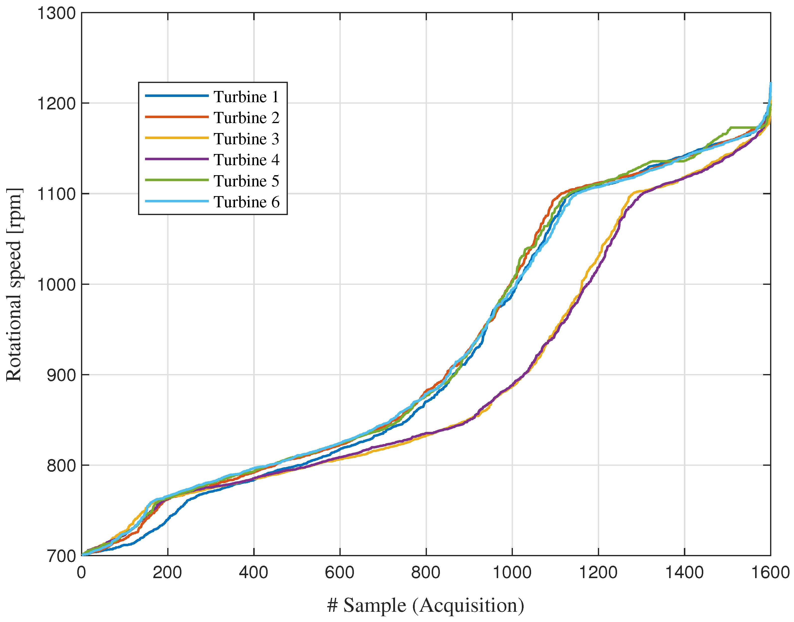 Figure 2. Sorted speed for the six turbines.