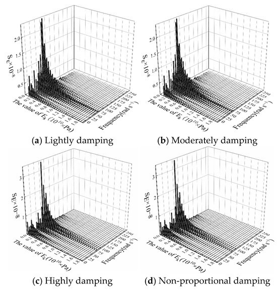 It has been proved that the damping matrix ought to be removed from Equation (1) during the identification of mass- and stiffness-related parameters. Nevertheless, it is apparent that the simulated experimental structures with different damping distribution will definitely lead to different magnitudes of seismic responses. The impact of this phenomenon on updated results will be studied in this section.