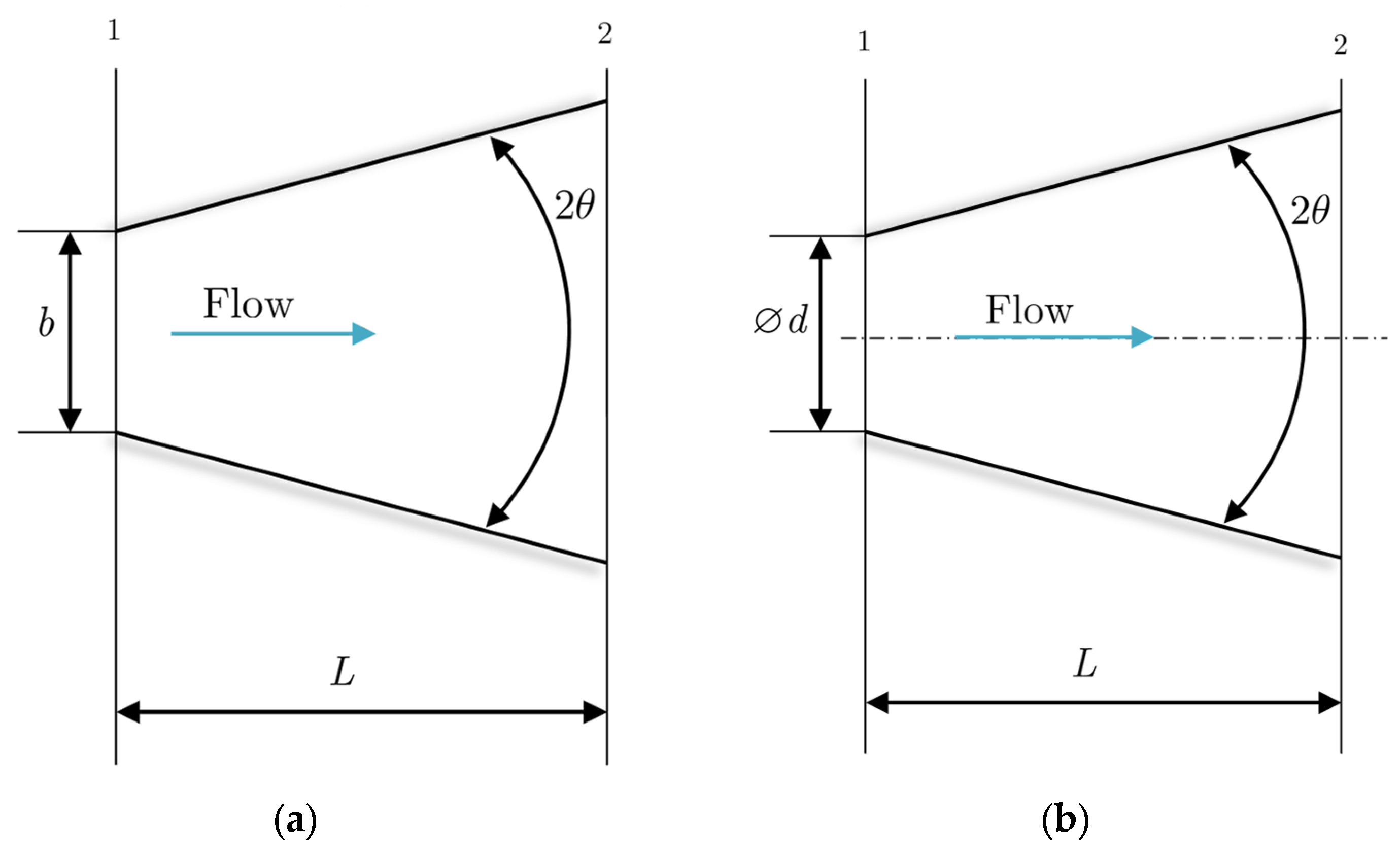 | Divergent/expansion type [15,16] | Wall angle > 0° (increasing passage area) | Reversed gradients and secondary flows | Potential higher recovery at low speed | Flow instability; low efficiency |