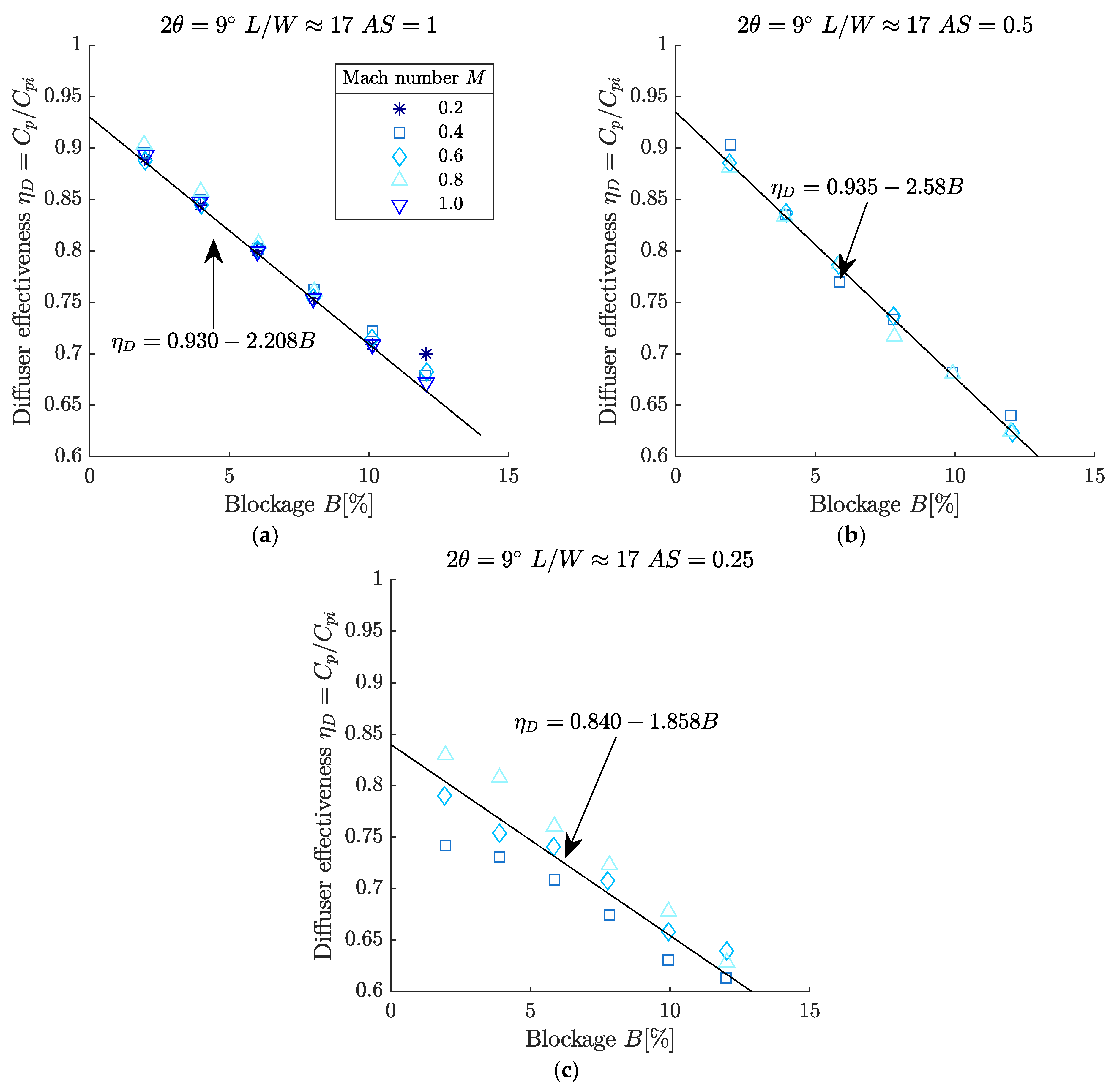 | Total Pressure Recovery Coefficient (Cpr) | (P,out − P,in)/qₜ | 0.6–0.85 [98] | Direct measure of diffuser efficiency; influenced by AR, AS, Mach, Re | Use as performance metric for empirical validation and optimization |