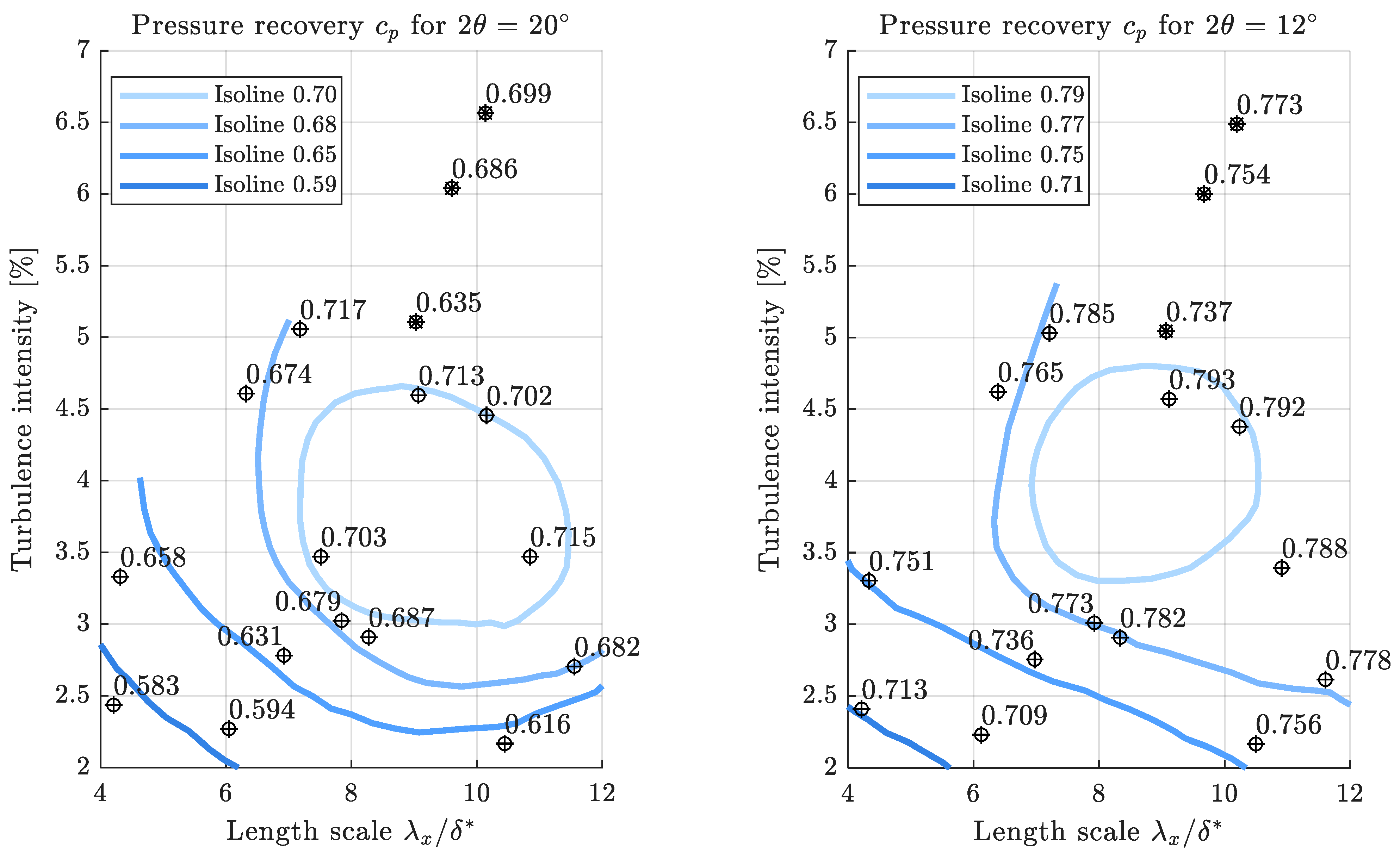 | Divergence Angle | Too steep can cause separation, affects efficiency | Small (~5–7° for 2D diffusers) | Too small increases length; too large causes separation |