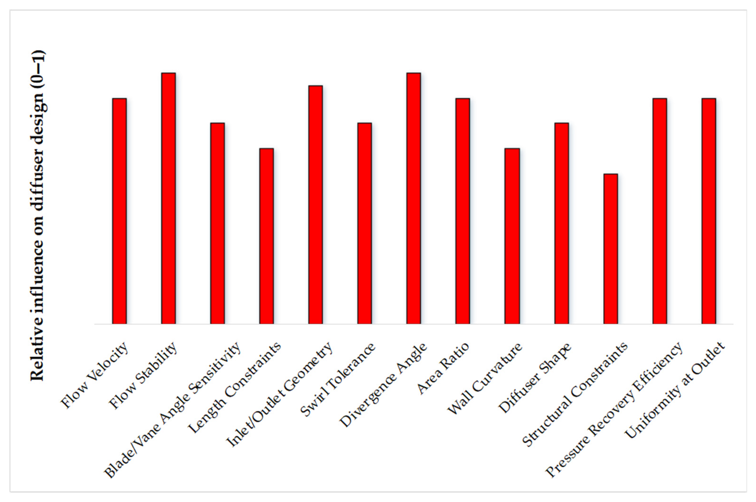 | Parameter | Flow Velocity | Flow Stability | Blade/Vane Angle Sensitivity | Length Constraints | Inlet/Outlet Geometry | Swirl Tolerance | Divergence Angle | Area Ratio | Wall Curvature | Diffuser Shape | Structural Constraints | Pressure Recovery Efficiency | Uniformity at Outlet |