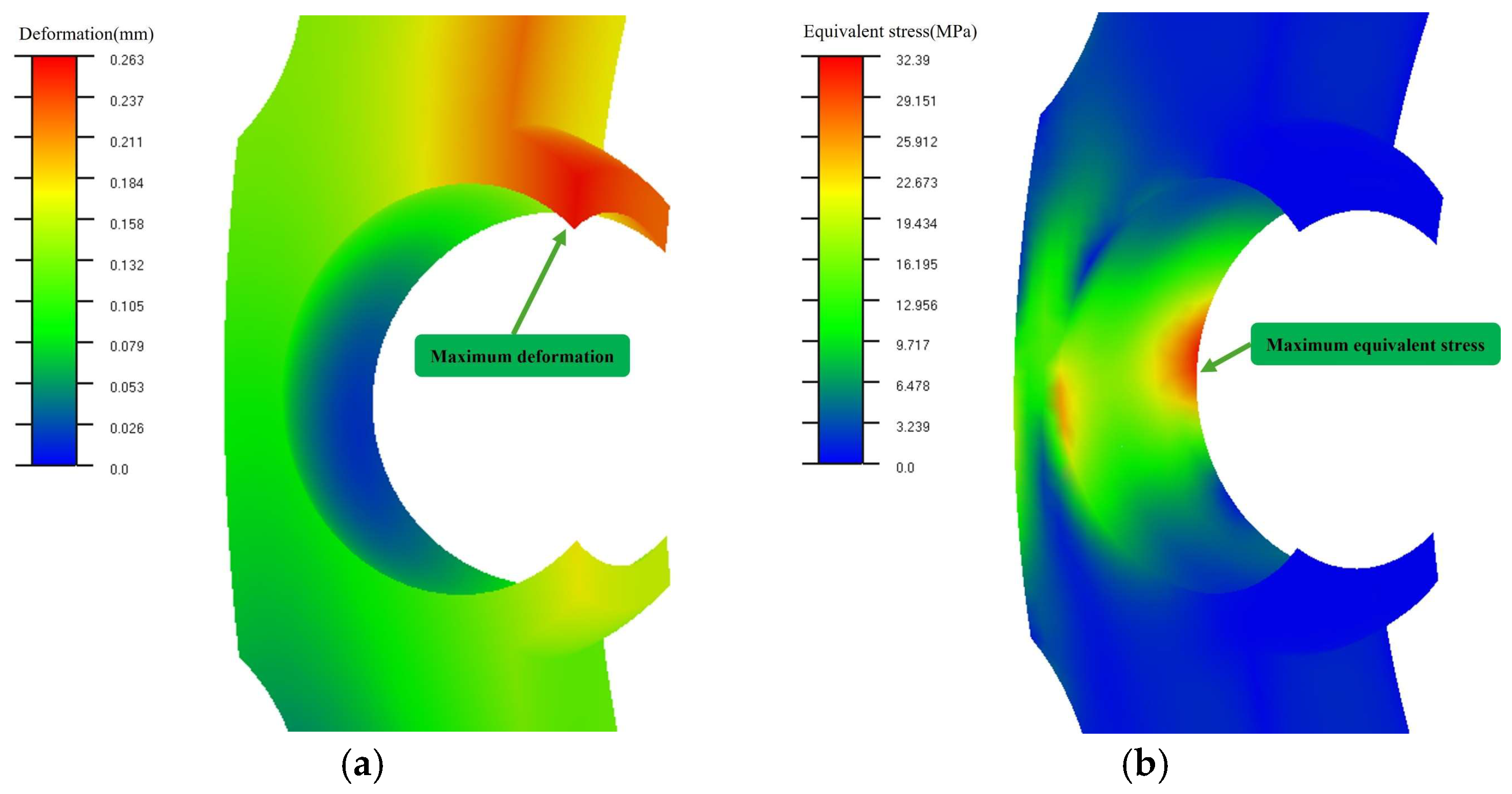 - Stress and Deformation Distribution: The claw ends of the crown-type cage pockets are particularly vulnerable to deformation, with the maximum equivalent stress occurring at the bottom of the pocket. This location is critical, as it represents the primary site for potential cage fracture failure.