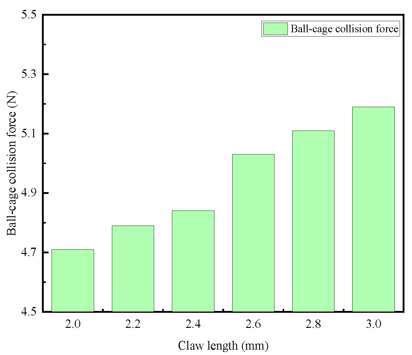 4.3.3. Influence of Claw Length L on Cage Operational Stability