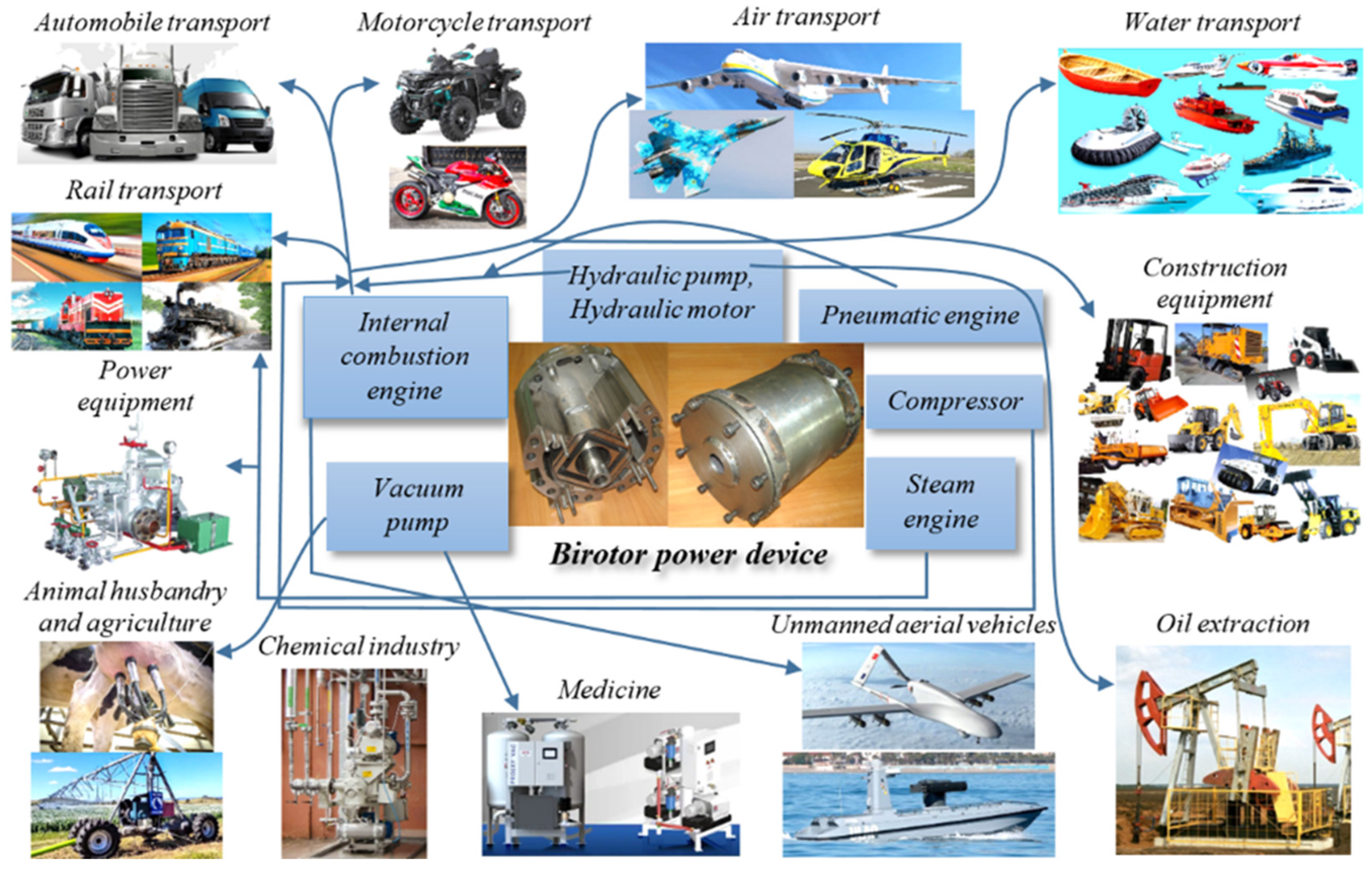 BM technology is also relevant for use in internal combustion engines (ICE), both two-stroke and four-stroke, particularly for compact autonomous power units in various sectors: marine (especially sea transport), aviation, land transport, and portable mechanical tool systems [
