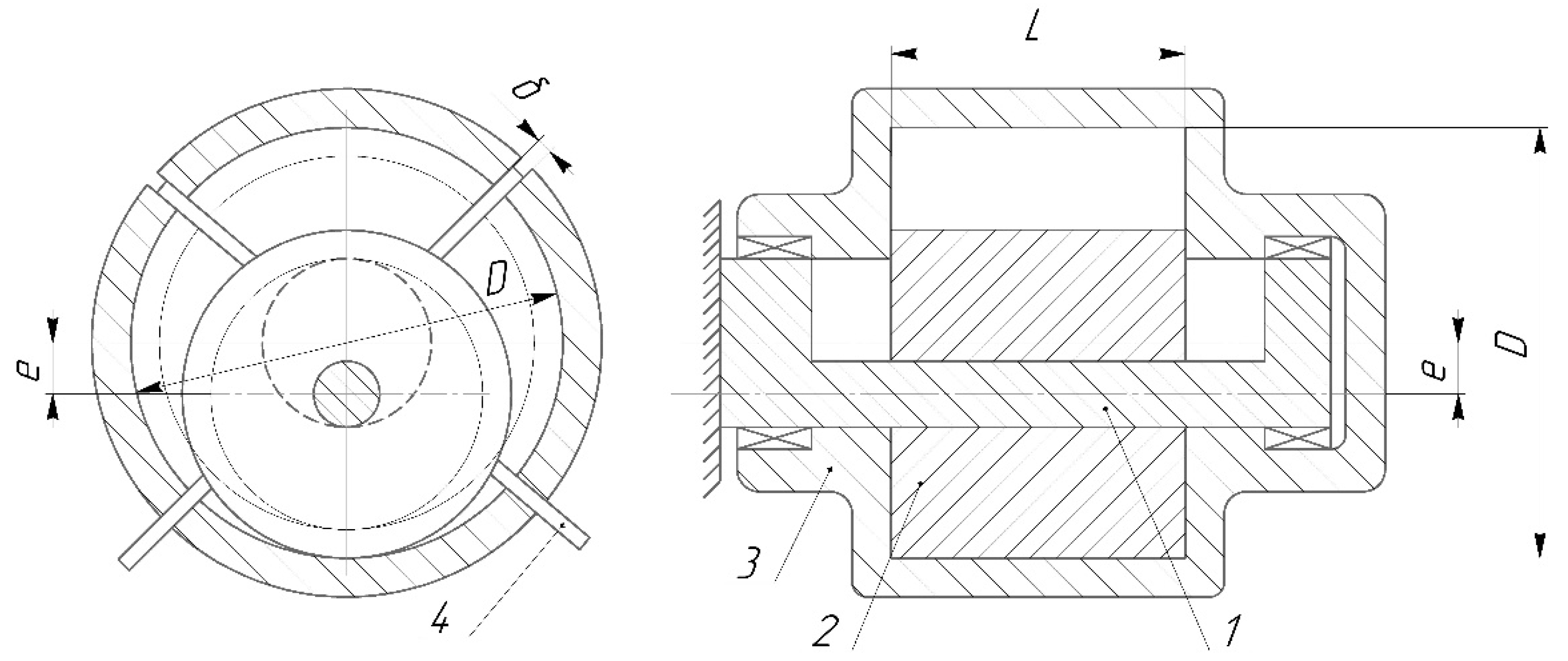 - e—eccentricity (distance between the rotational axes of the housing and the rotor),