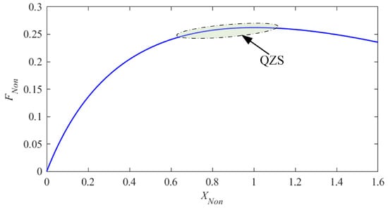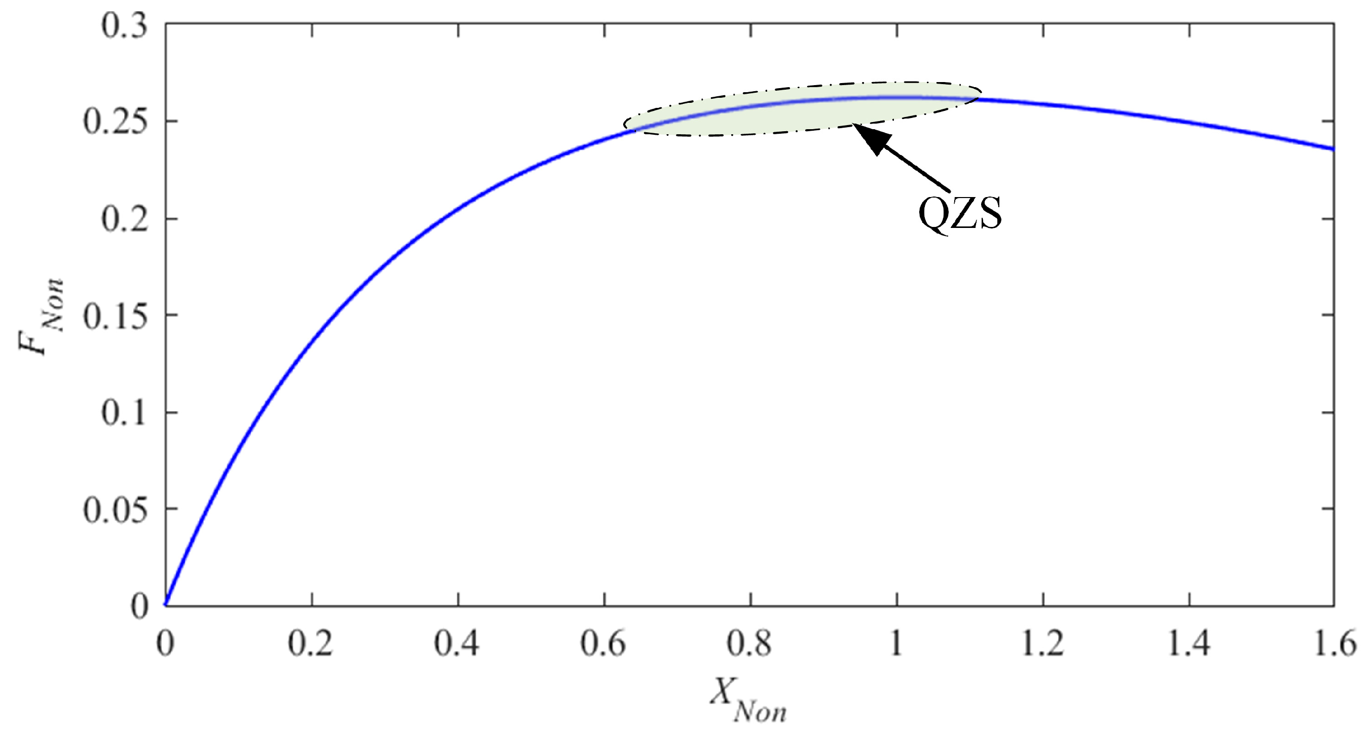 According to Equation (8) and Appendix A, the non-dimensional static force-displacement curve of the proposed NXVIS is shown in Figure 4.