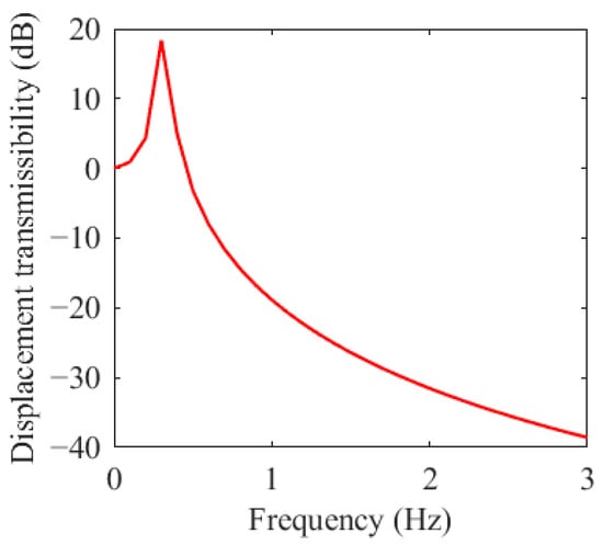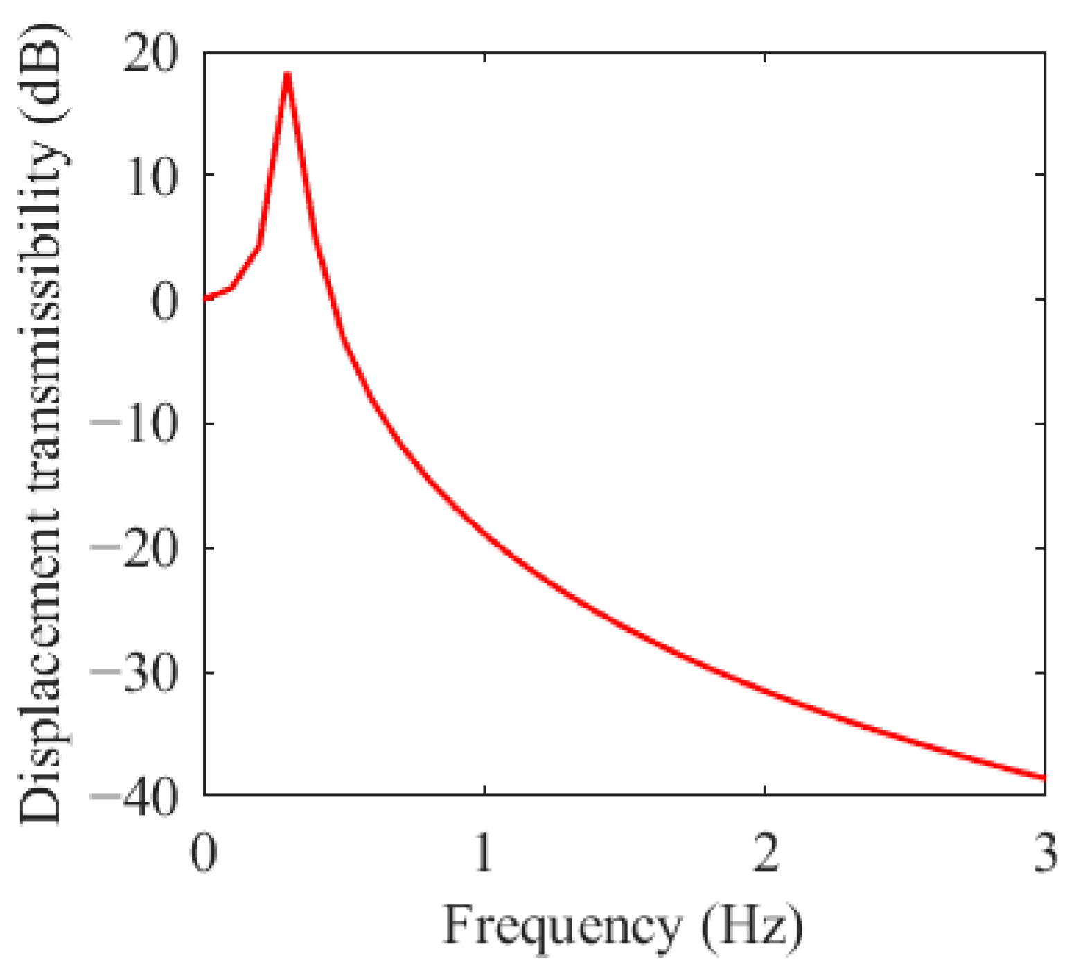 Based on the parameters in Appendix A and Equation (14), the transmissibility of the NXVIS is shown in Figure 9.