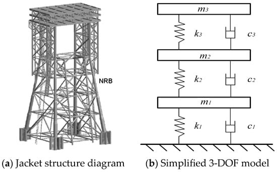 Jacket platforms are fixed platforms secured to the seabed by steel piles penetrating a certain depth, which are widely used in offshore oil and gas production. Due to structural characteristics and operating environment, jacket platforms are susceptible to various marine environmental loads, such as earthquakes, wind, waves, ice loads, and ship impacts. Long-term exposure to these marine environments can cause structural vibrations of jacket platforms, which can cause fatigue damage to the steel structure, impacting platform production efficiency and even leading to catastrophic failure [1,2]. Furthermore, external disturbances inevitably affect worker productivity and comfort, negatively impacting production cost control. Extensive research has been conducted on vibration control of jacket platforms under marine environmental loads [3]. However, most efforts have focused on suppressing vibrations caused by wave excitation, while limited research has considered seismic excitation [4,5,6]. This is because waves are the most common loads on offshore platforms, constantly impacting structural stability [3,7]. However, structural damage caused by waves is long-term, and the initial site selection of offshore platforms usually considers local hydrological conditions. Therefore, limited wave loads can cause irreversible damage to the platform in a single instance. However, seismic loads are unpredictable and have a wide frequency range (mostly concentrated between 0.7 and 3.0 Hz) [8,9]. Strong earthquakes often have catastrophic effects on offshore platforms and can cause severe damage to these structures [5,6,10,11]. Furthermore, the first-order vibration mode of most offshore platforms falls within the frequency range of seismic energy [4], which can trigger resonance in the offshore platform and amplify the destructive power of the earthquake. Statistics indicate that approximately hundreds of offshore platforms are currently located in seismically active areas [5]. Therefore, studying the vibration control of jacket offshore platforms under seismic loads is of great significance.