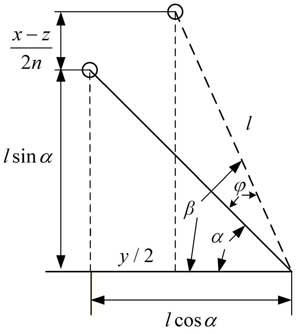 y = 2 l cos α 2 l 2 l sin α + x ^ / 2 n 2