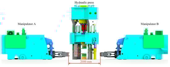 - Hou, J.; Zhang, Z.; Zhou, H.; Ning, D.; Gong, Y. Hydraulic systems control based on the characteristics of major-motion mechanism for an open-die forging manipulator. Adv. Mech. Eng. 2017, 9, 81–99. [Google Scholar] [CrossRef]