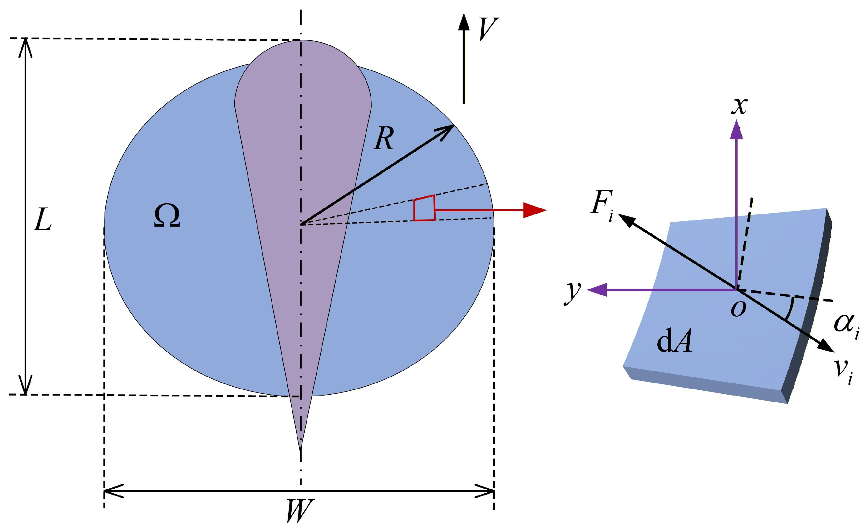 The propulsive force of the robotic fish is determined using a differential element method. In this approach, the oval fin is discretized radially into multiple small elements. As shown in