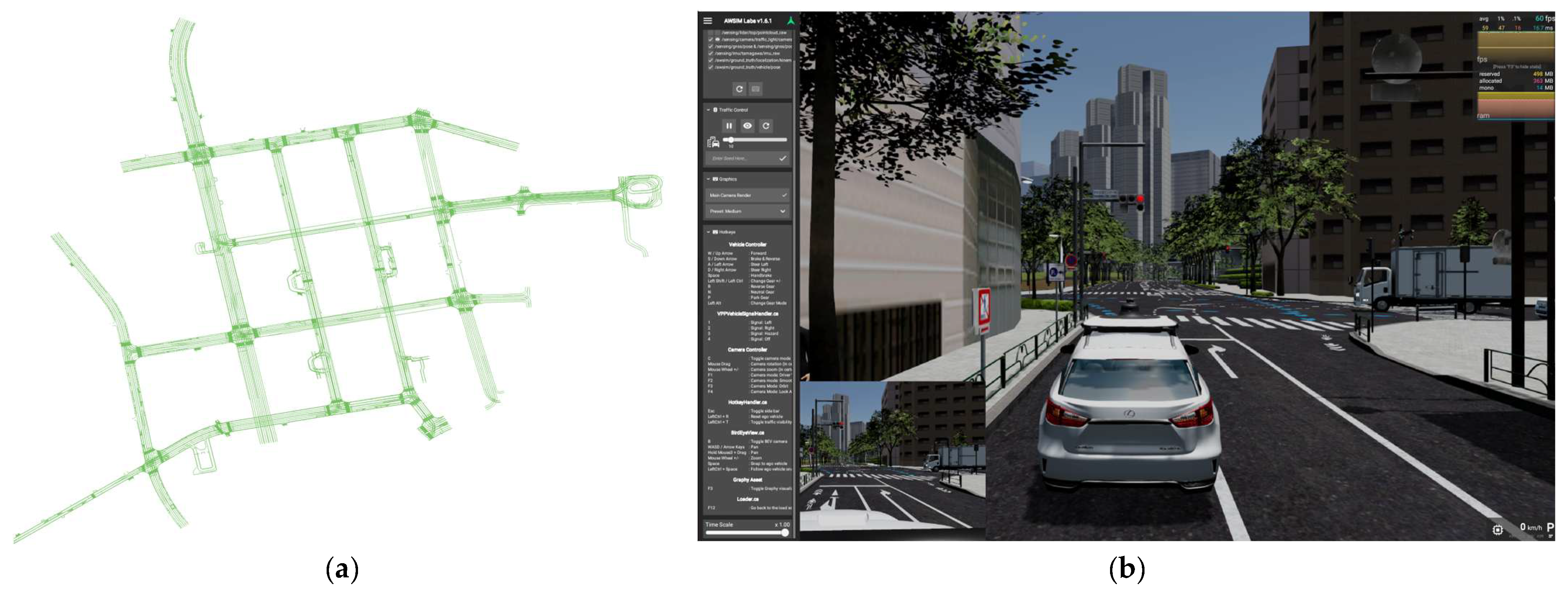 - Cao, Y.; Sun, H.; Li, G.; Sun, C.; Li, H.; Yang, J.; Tian, L.; Li, F. Multi-Environment Vehicle Trajectory Automatic Driving Scene Generation Method Based on Simulation and Real Vehicle Testing. Electronics 2025, 14, 1000. [Google Scholar] [CrossRef]