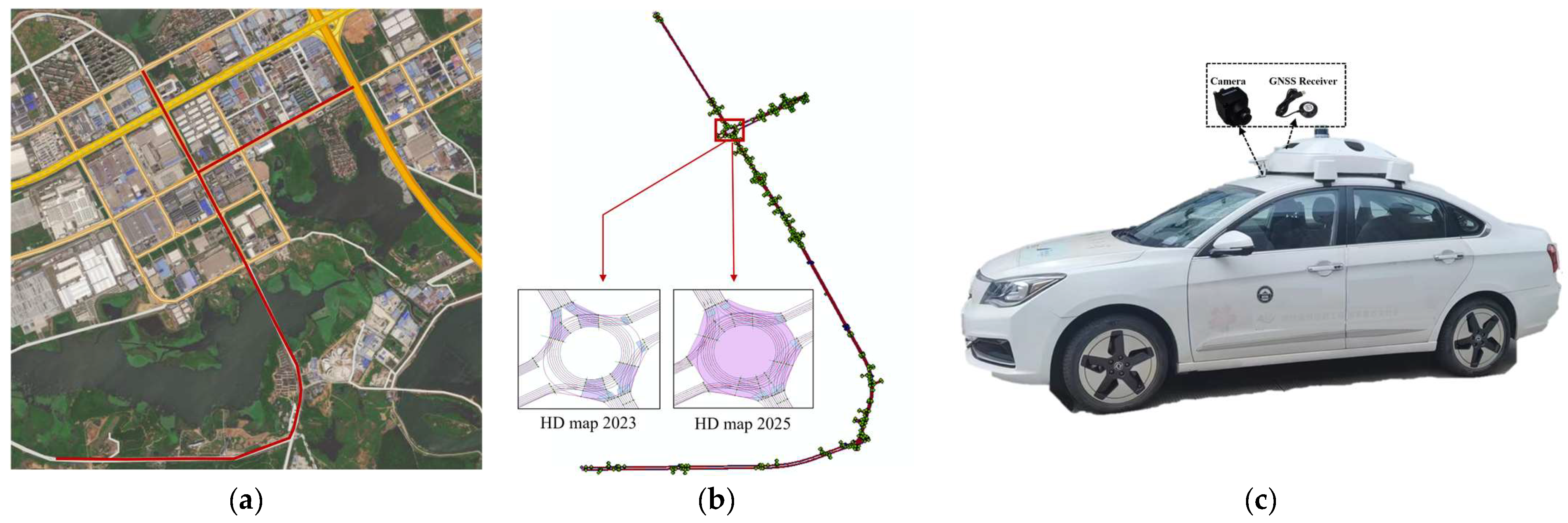 - Guo, Y.; Zhou, J.; Dong, Q.; Li, B.; Xiao, J.; Li, Z. Refined high-definition map model for roadside rest area. Transp. Res. Part A Policy Pract. 2025, 195, 104463. [Google Scholar] [CrossRef]
