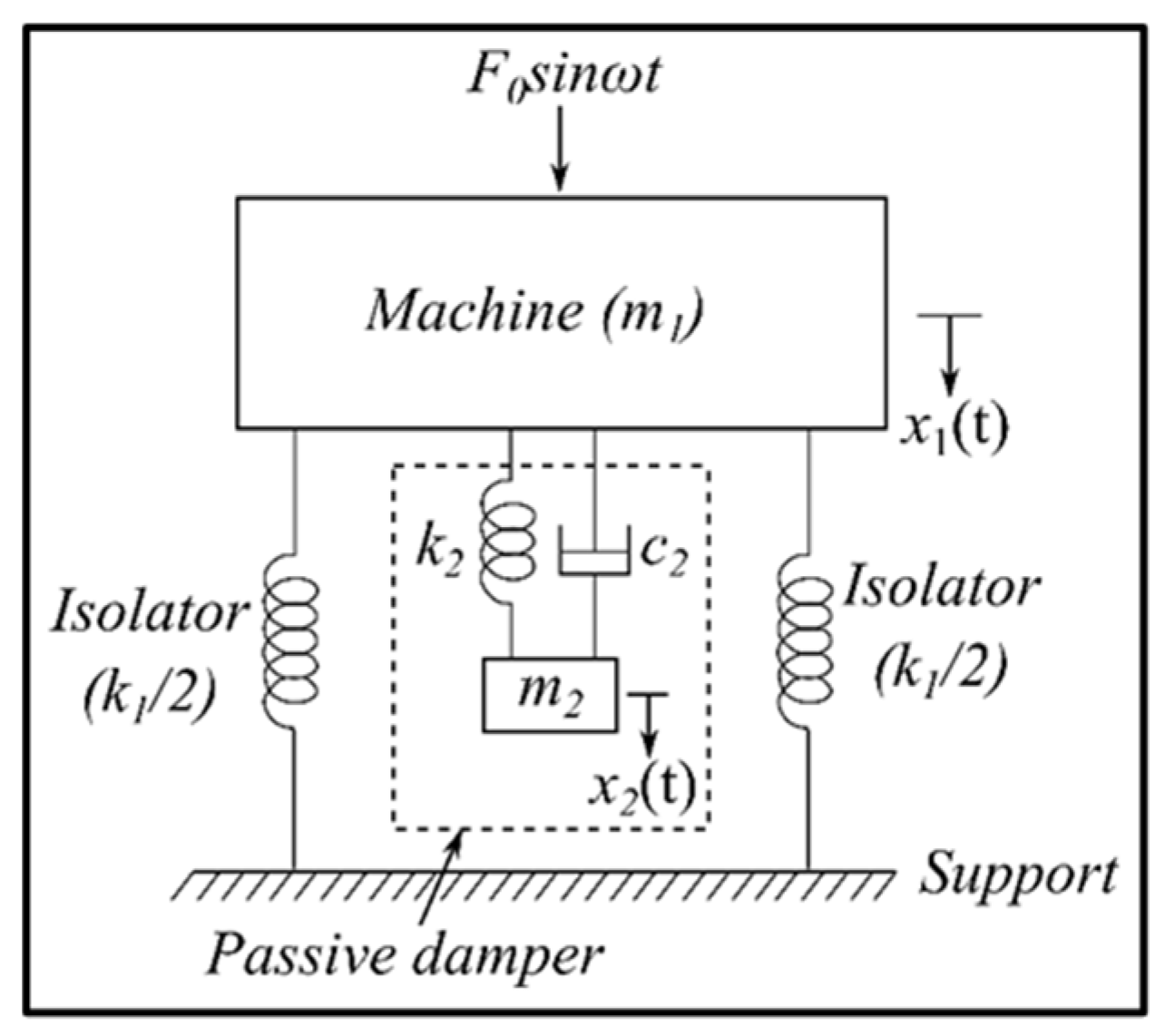 Early studies on active control have also explored active TMDs, in which actuators introduce variable stiffness and damping for optimal performance under dynamic loads (Abdel-Rohman [16]). With his work, he demonstrated that the optimal tuning of an active TMD depends on the desired control level and on the interaction between the device and the building’s first natural mode. However, such systems require a continuous energy supply, sensors, and advanced controllers, leading to higher complexity and cost, which limits their practical use in compact industrial machinery.