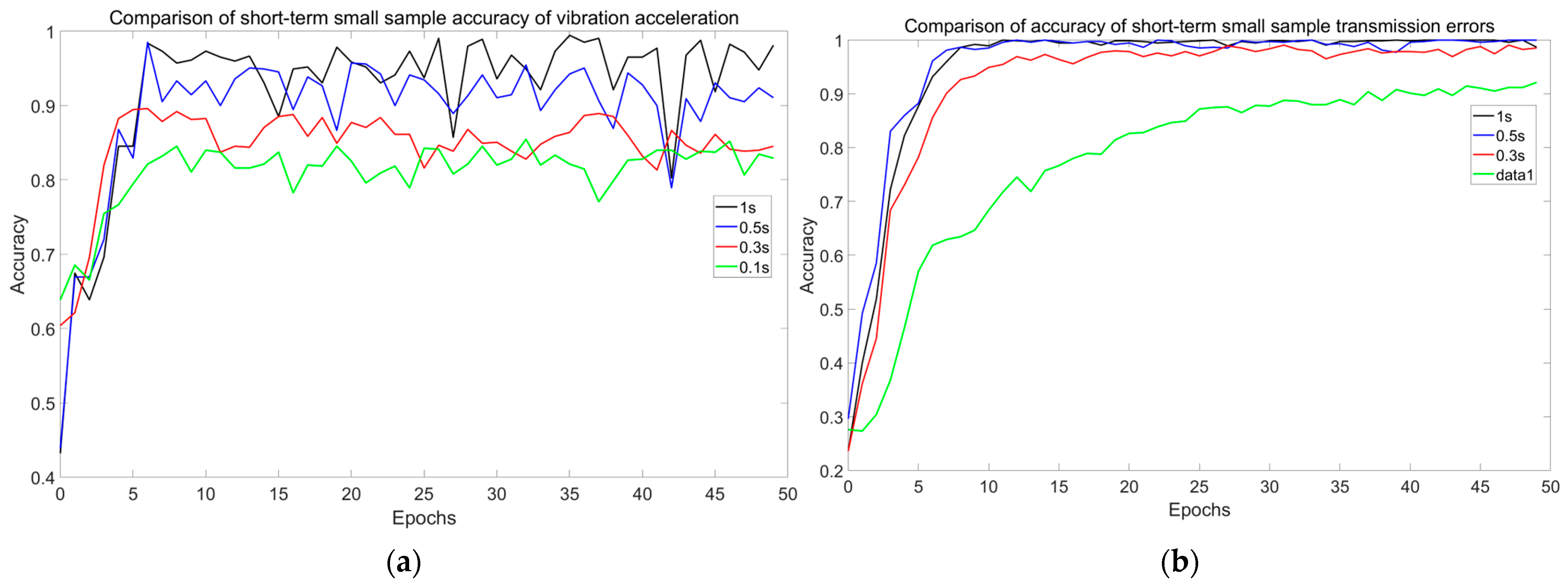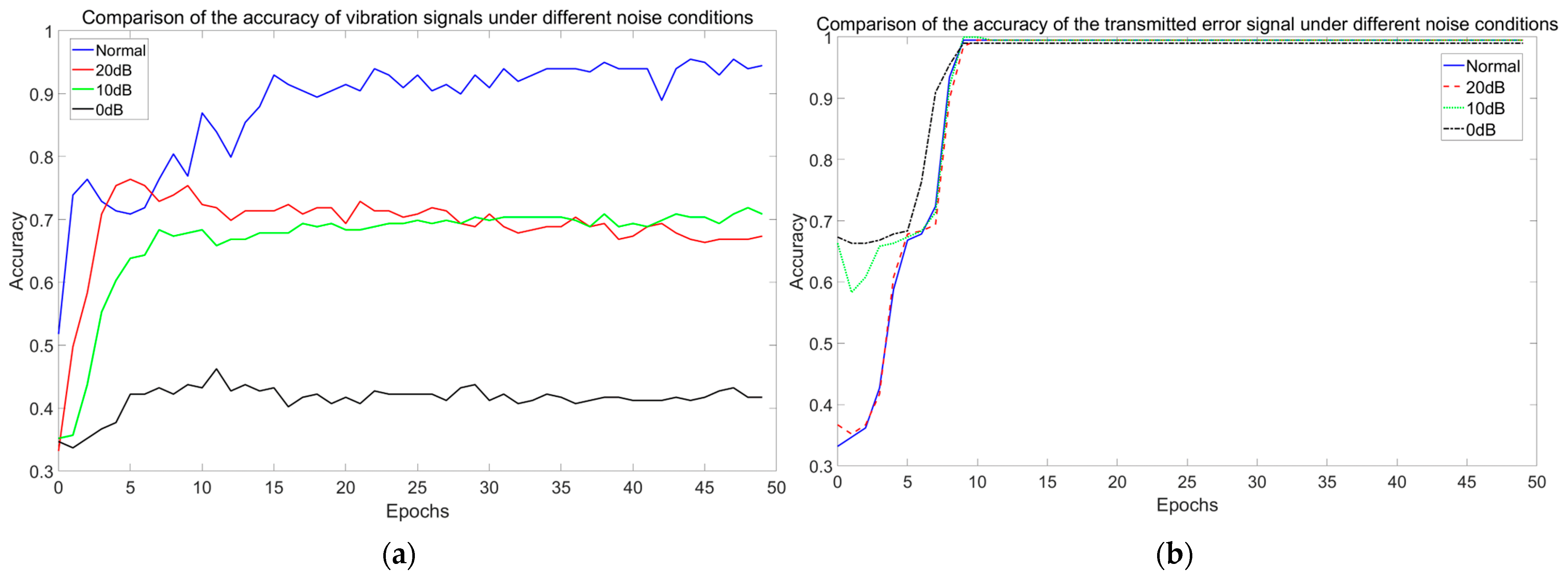 The model trained using the 600 RPM normal and crack fault data was then used to identify normal and crack fault data at 60 RPM. At different speeds, the propagation error signal still achieved 100% accuracy, while the vibration acceleration signal showed 50% accuracy. As shown in